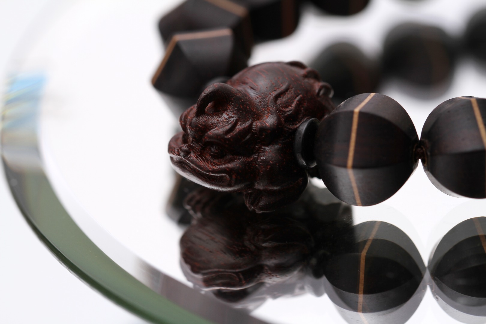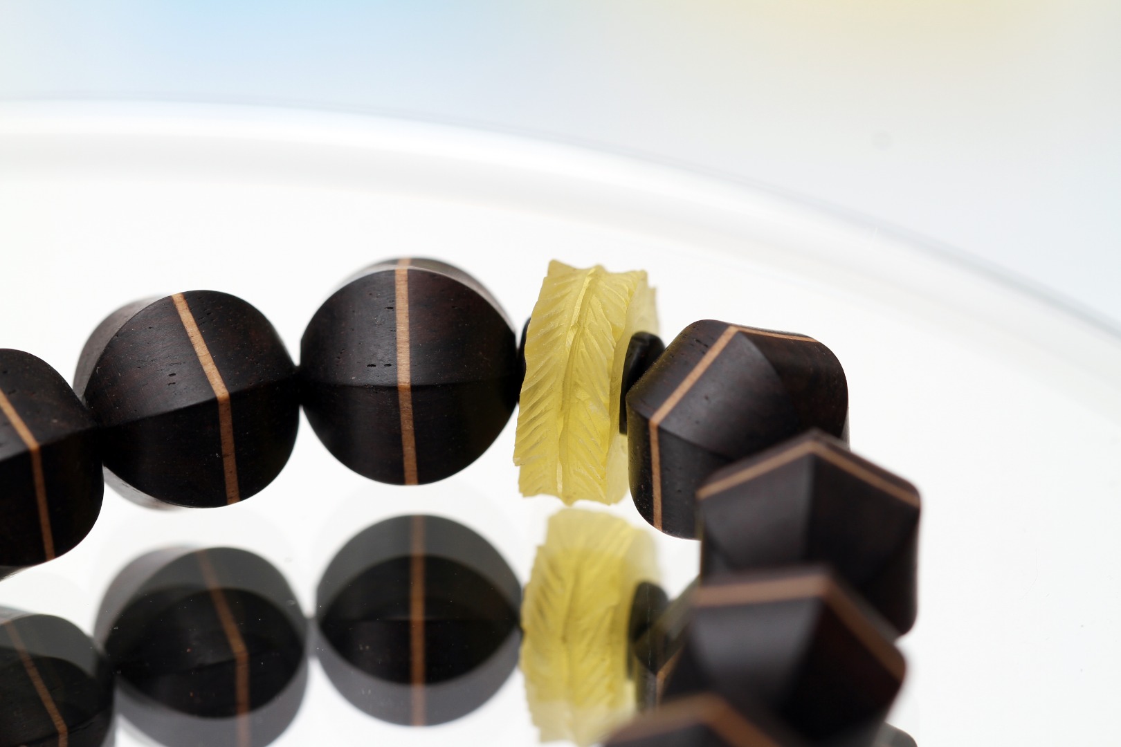 丨紫檀双色六棱瓜棱珠/紫檀小独角兽/椰壳/蜜蜡手工羽毛珠