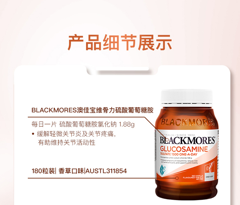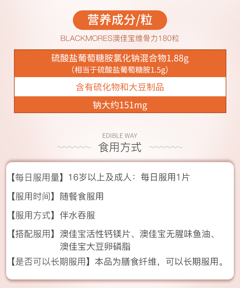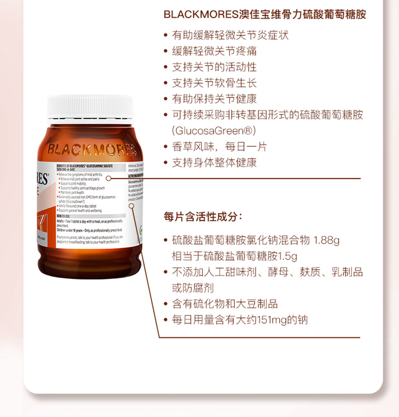 BLACKMORES澳佳宝 氨糖维骨力 180粒【不足200元订单,默认顺丰快递到付】