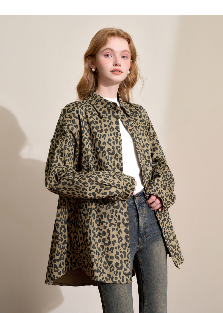 西遇J美式复古豹纹外套女秋季新款设计感polo领衬衫上衣SS141022