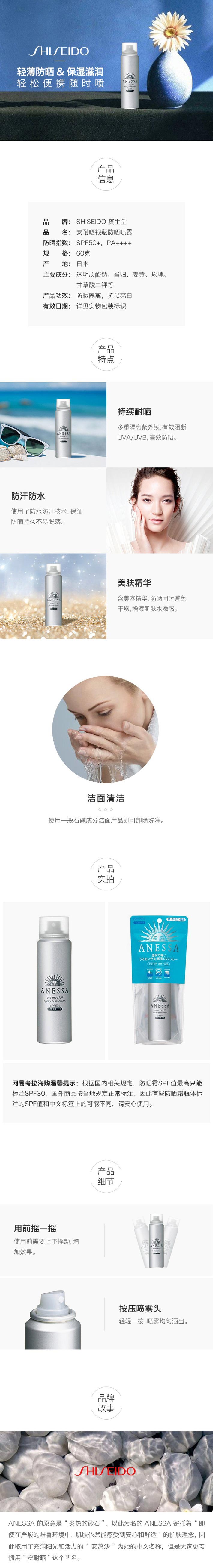 日本 SHISEIDO 资生堂 安耐晒银瓶防晒喷雾 60g