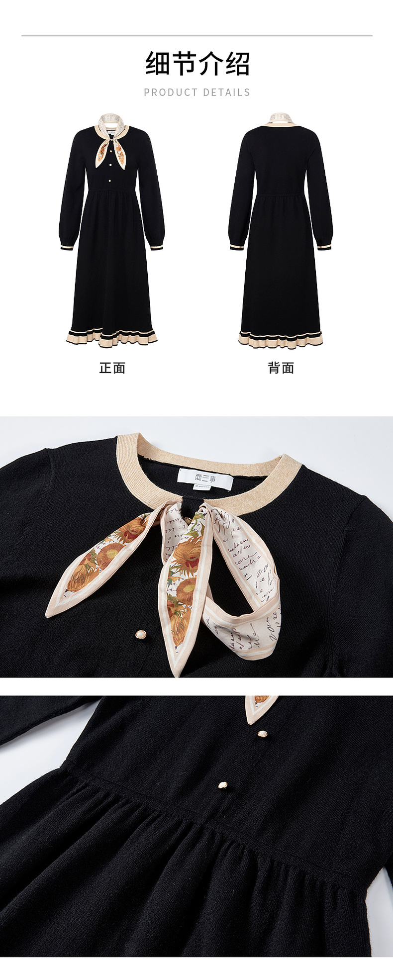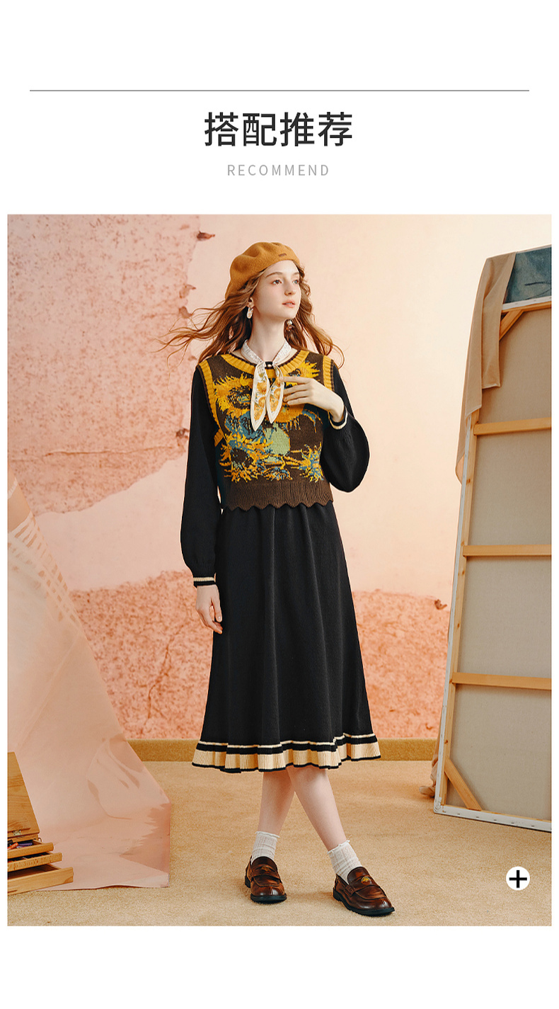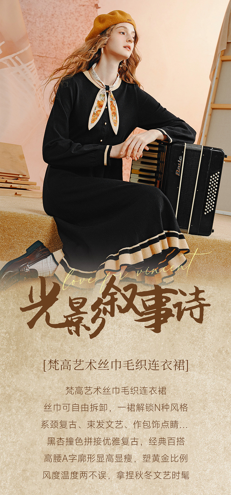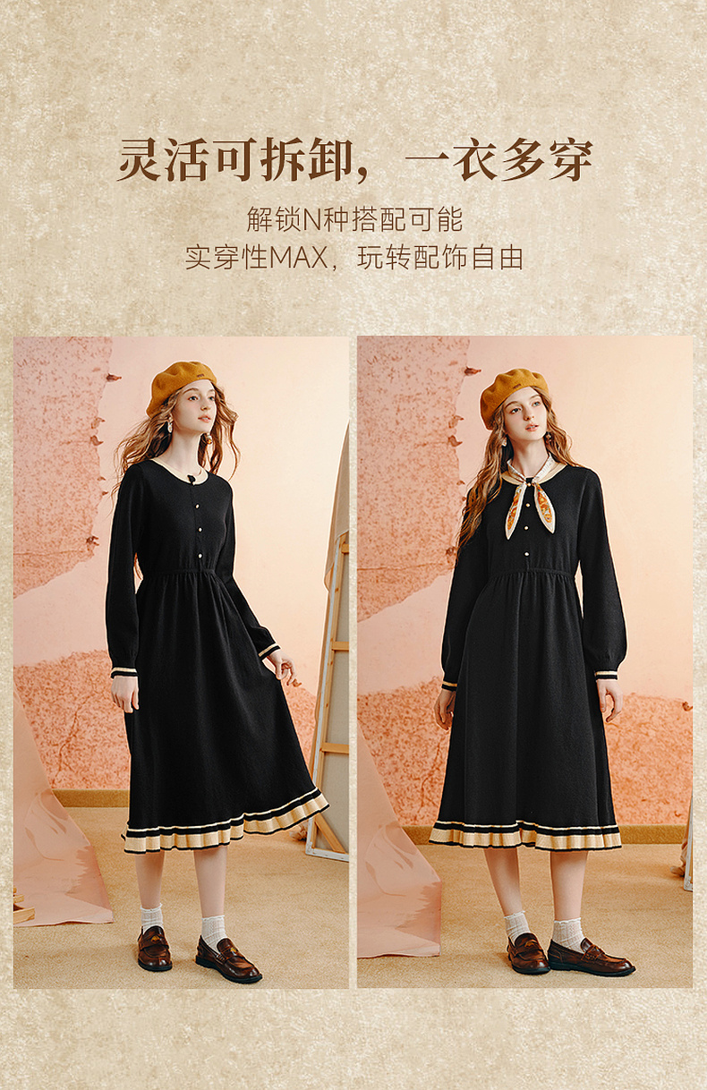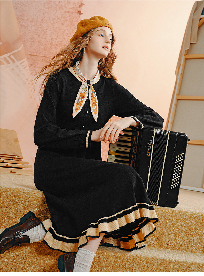 两三事老钱风松弛感女装贵气针织连衣裙复古印花领巾 光影叙事诗