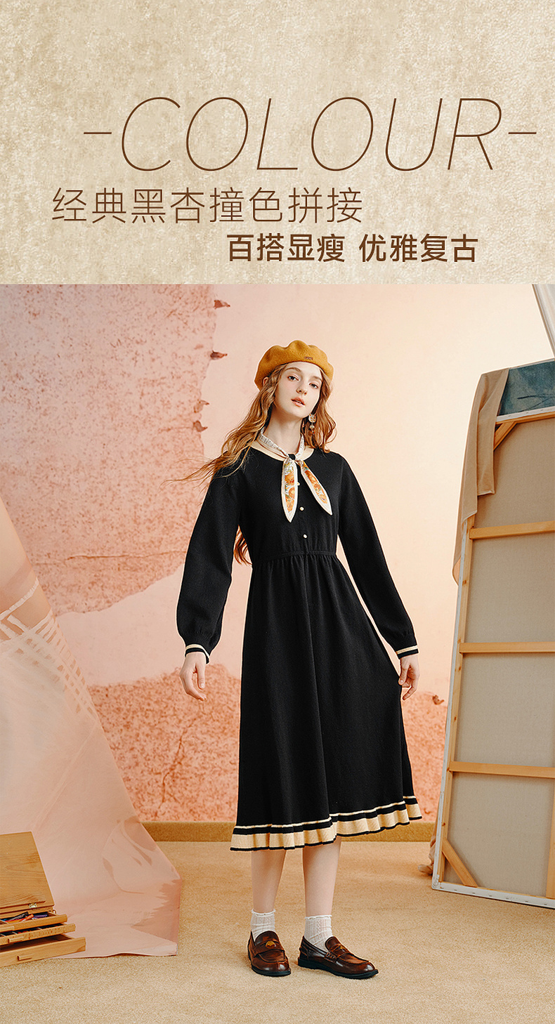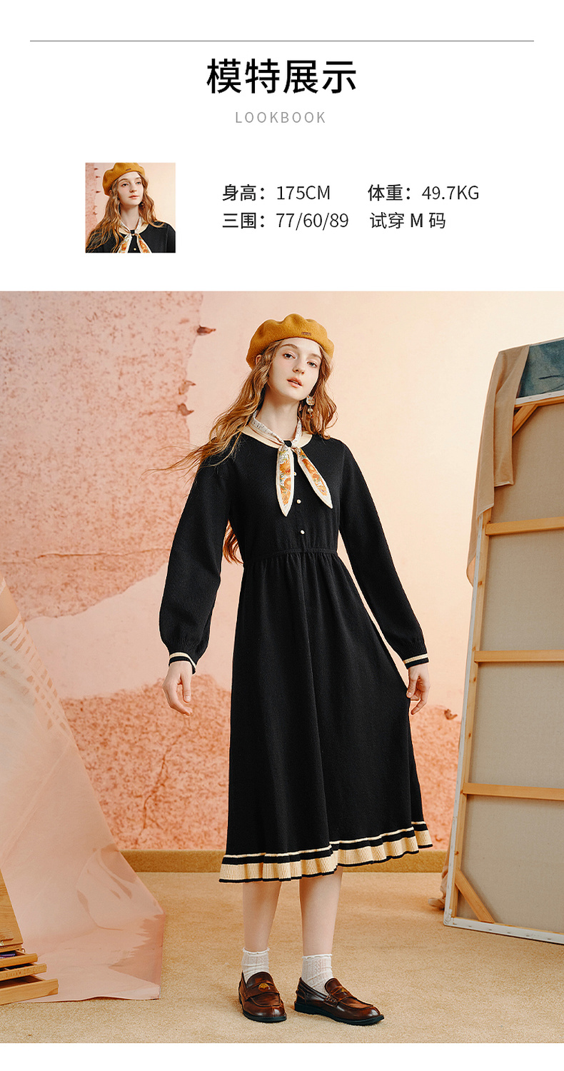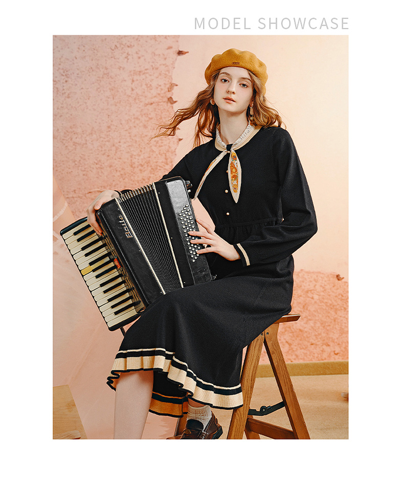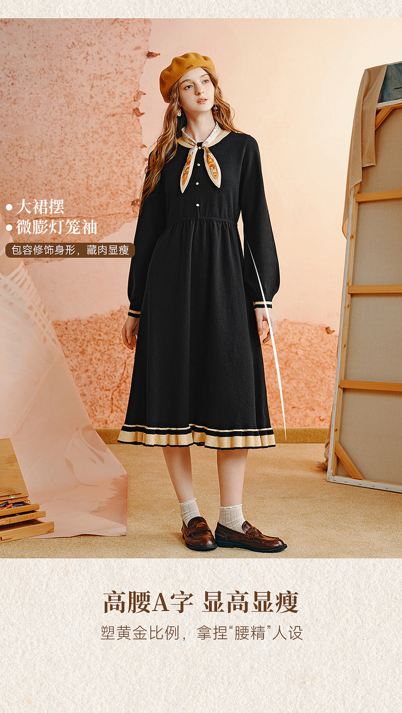 两三事老钱风松弛感女装贵气针织连衣裙复古印花领巾 光影叙事诗