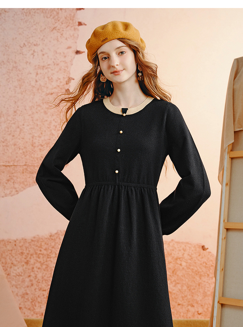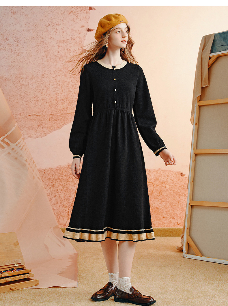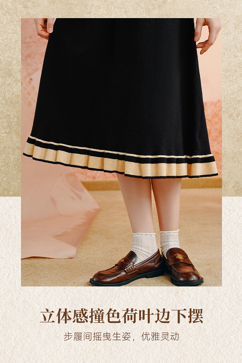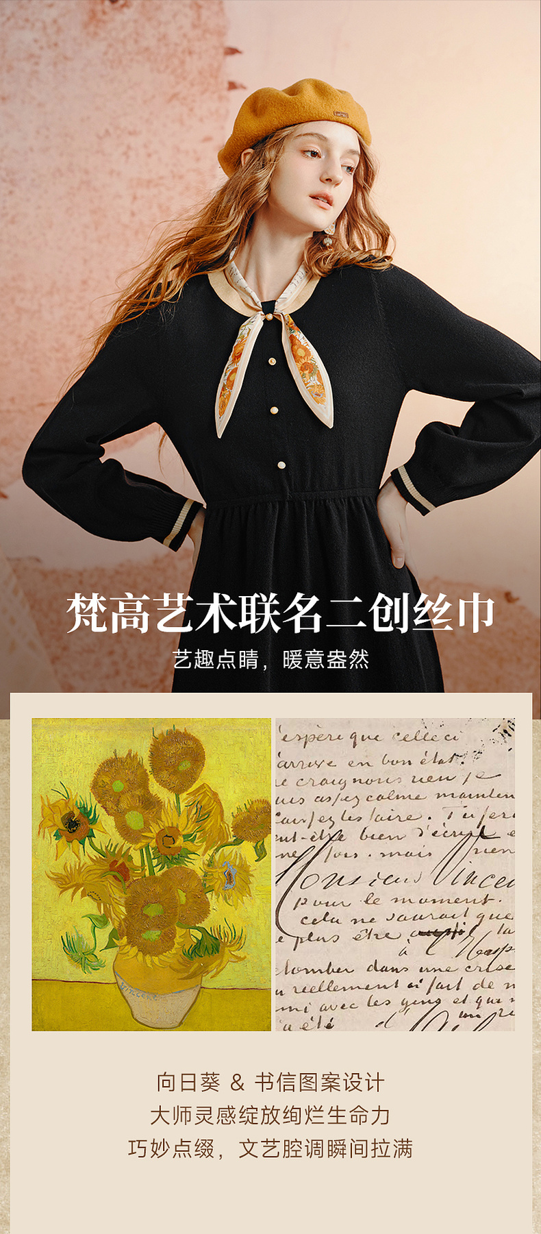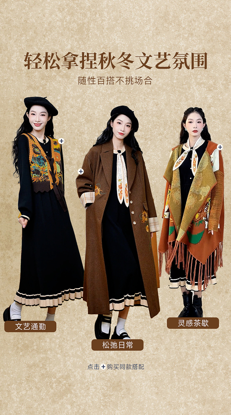 两三事老钱风松弛感女装贵气针织连衣裙复古印花领巾 光影叙事诗