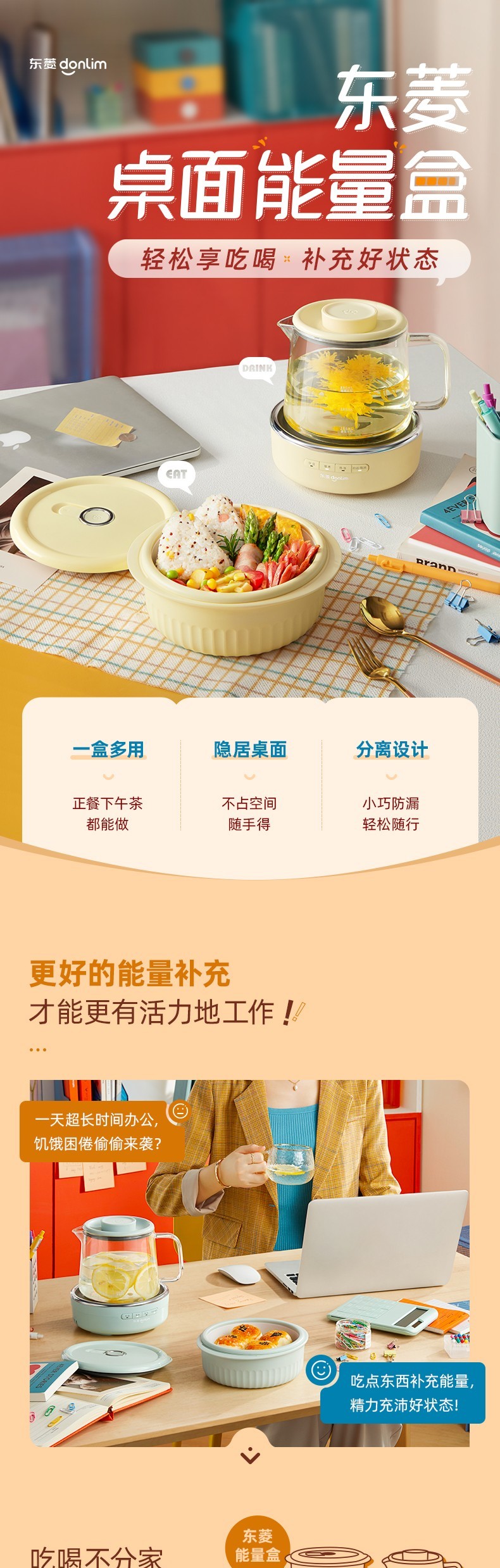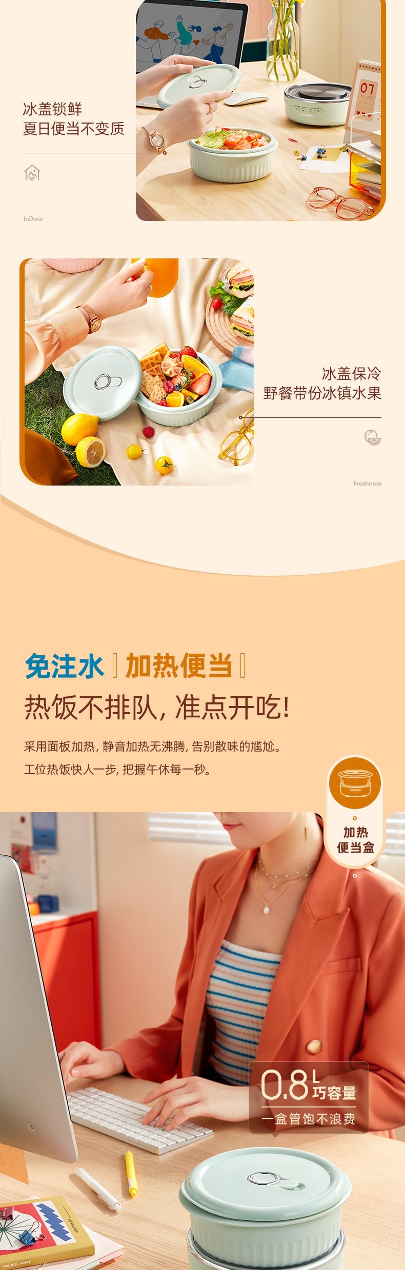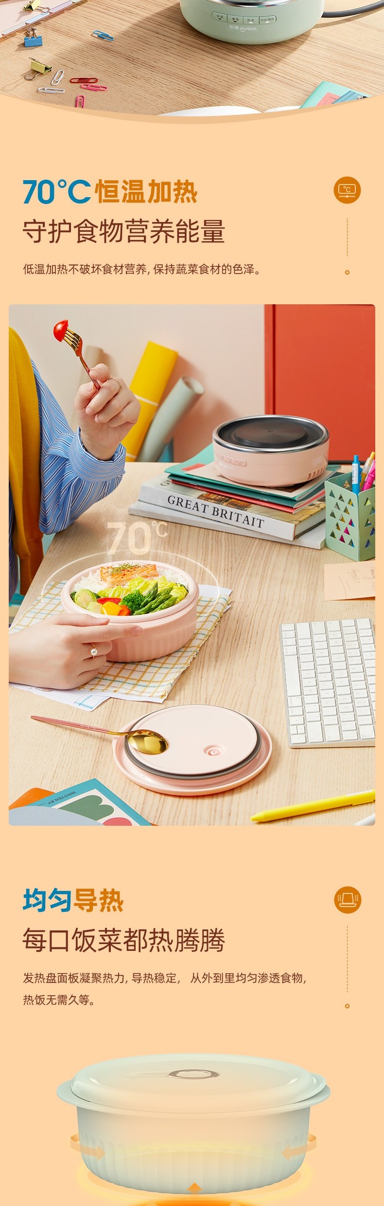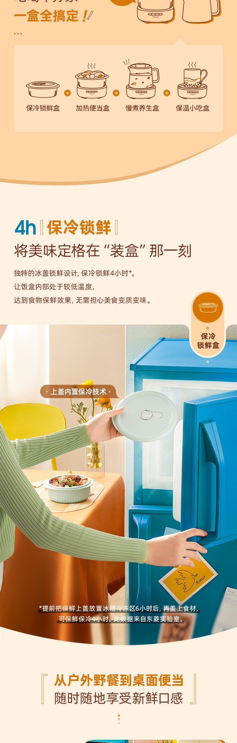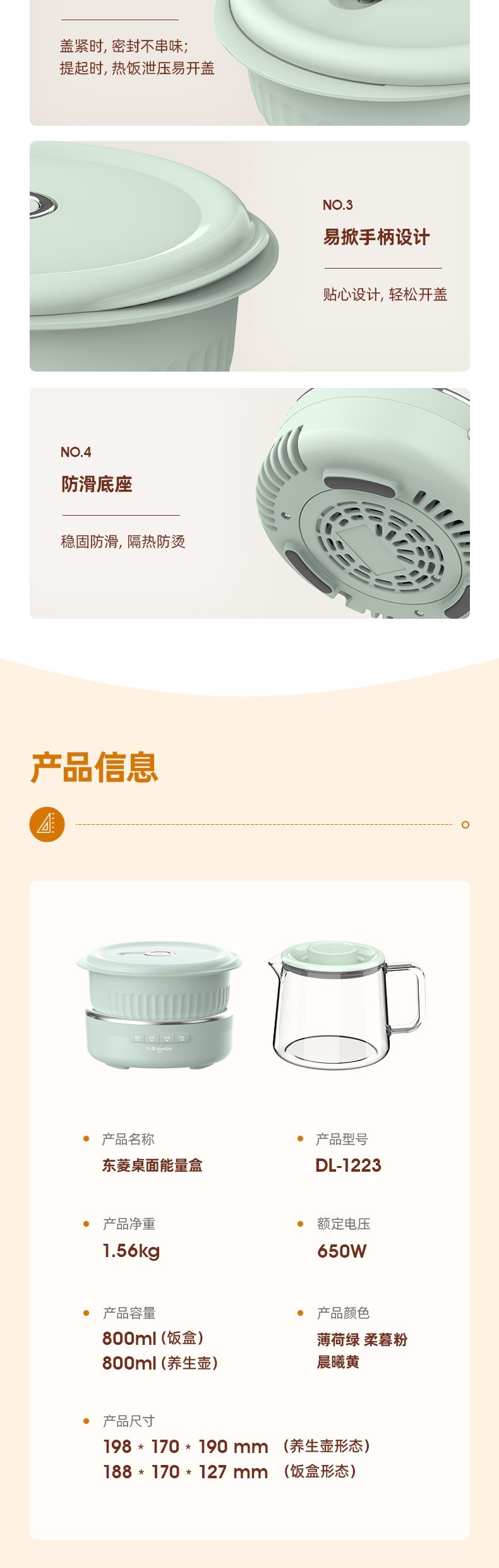 东菱 多功能电热饭盒 DL-1223 插电加热便当盒蒸煮