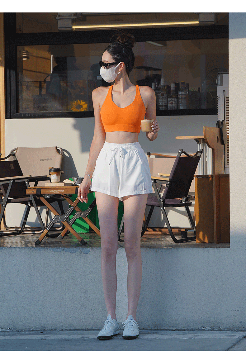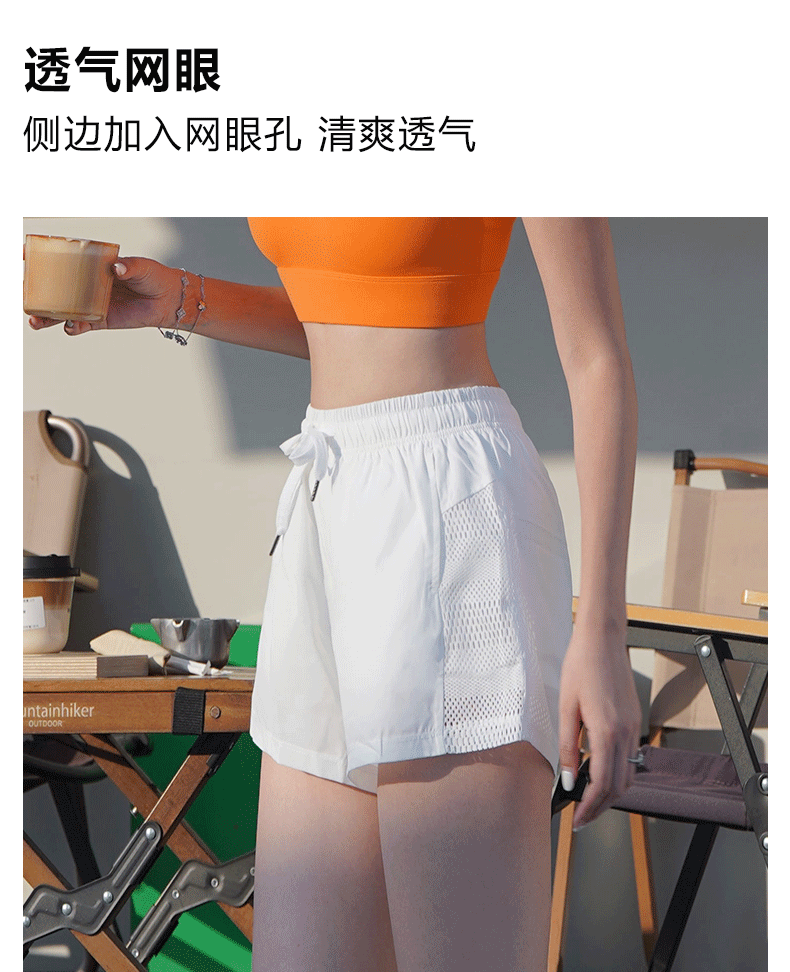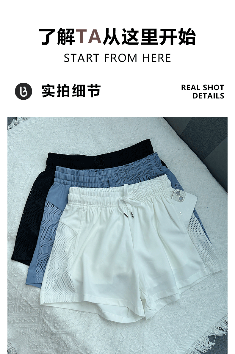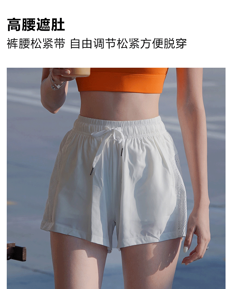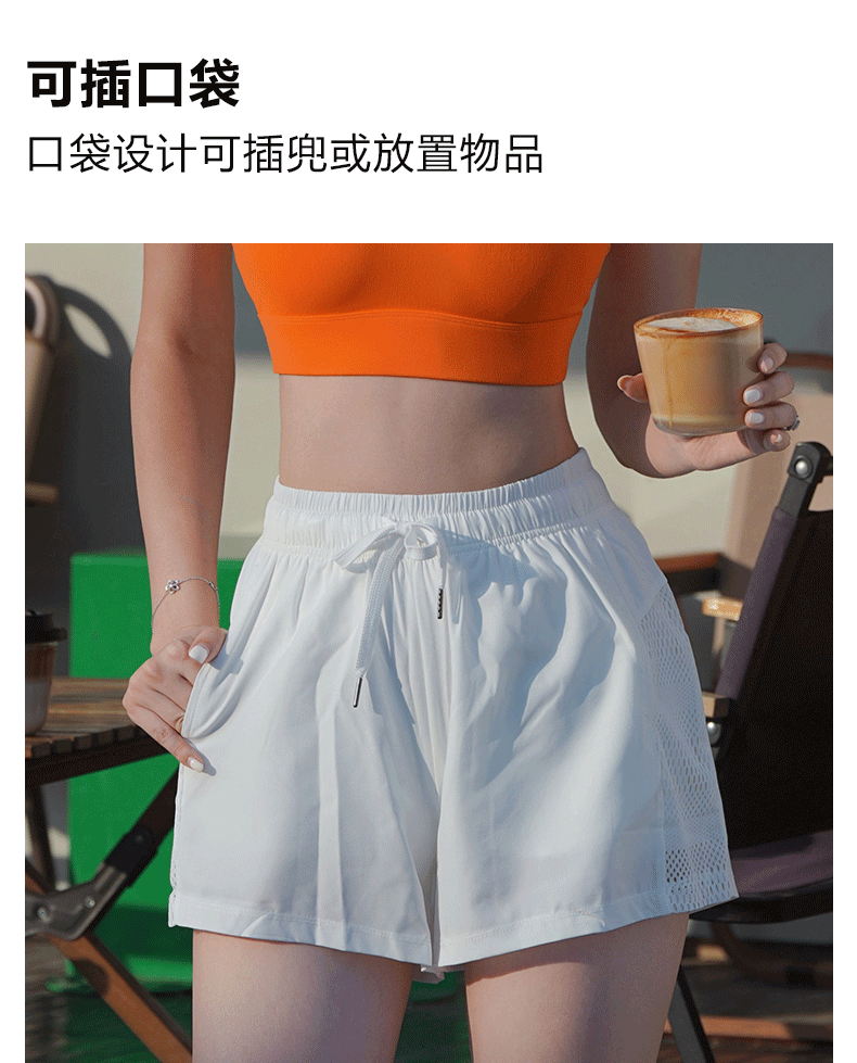 beemen夏季运动短裤女 带口袋 假两件防走光 跑步宽松训练健身网孔透气宽松瑜伽裤