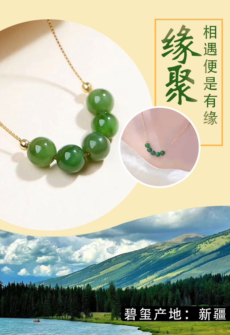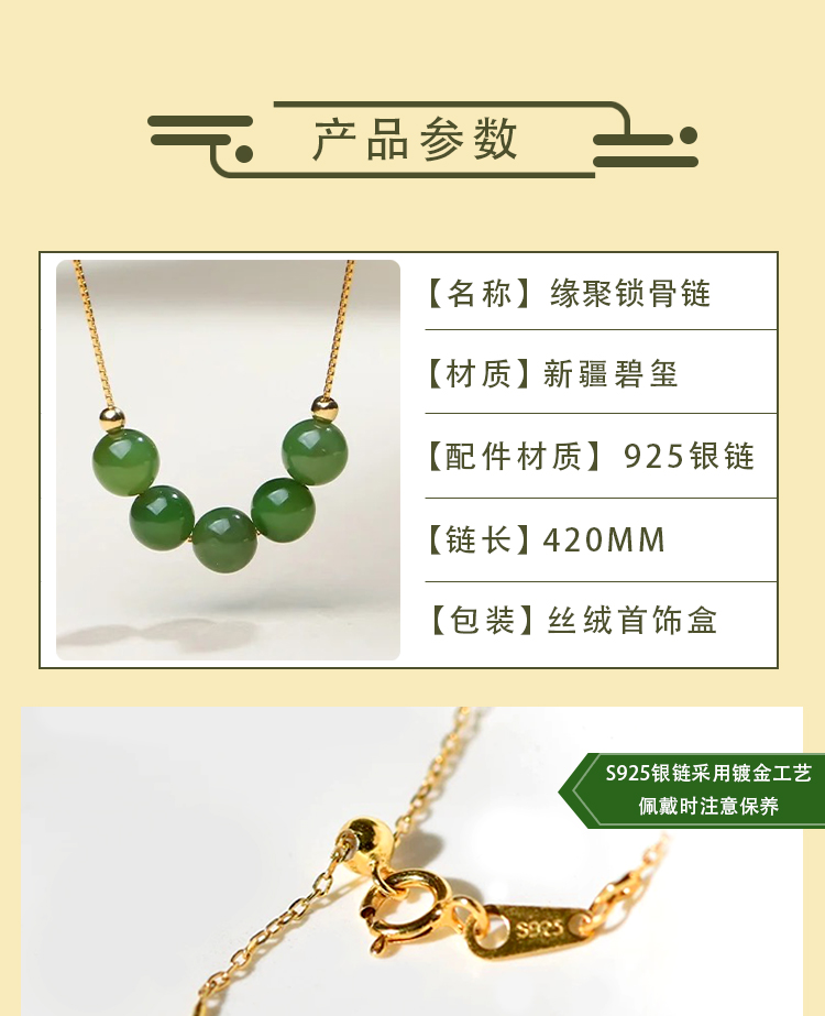 新款《缘聚》五福相连 聚在当下,来自新疆碧玺锁骨链 设计简约大气,修饰脖型,首饰盒里的必备款