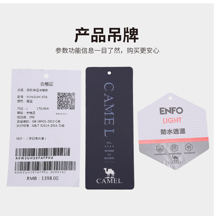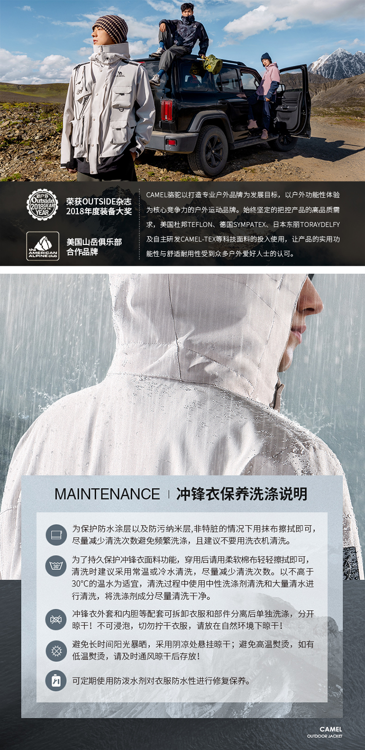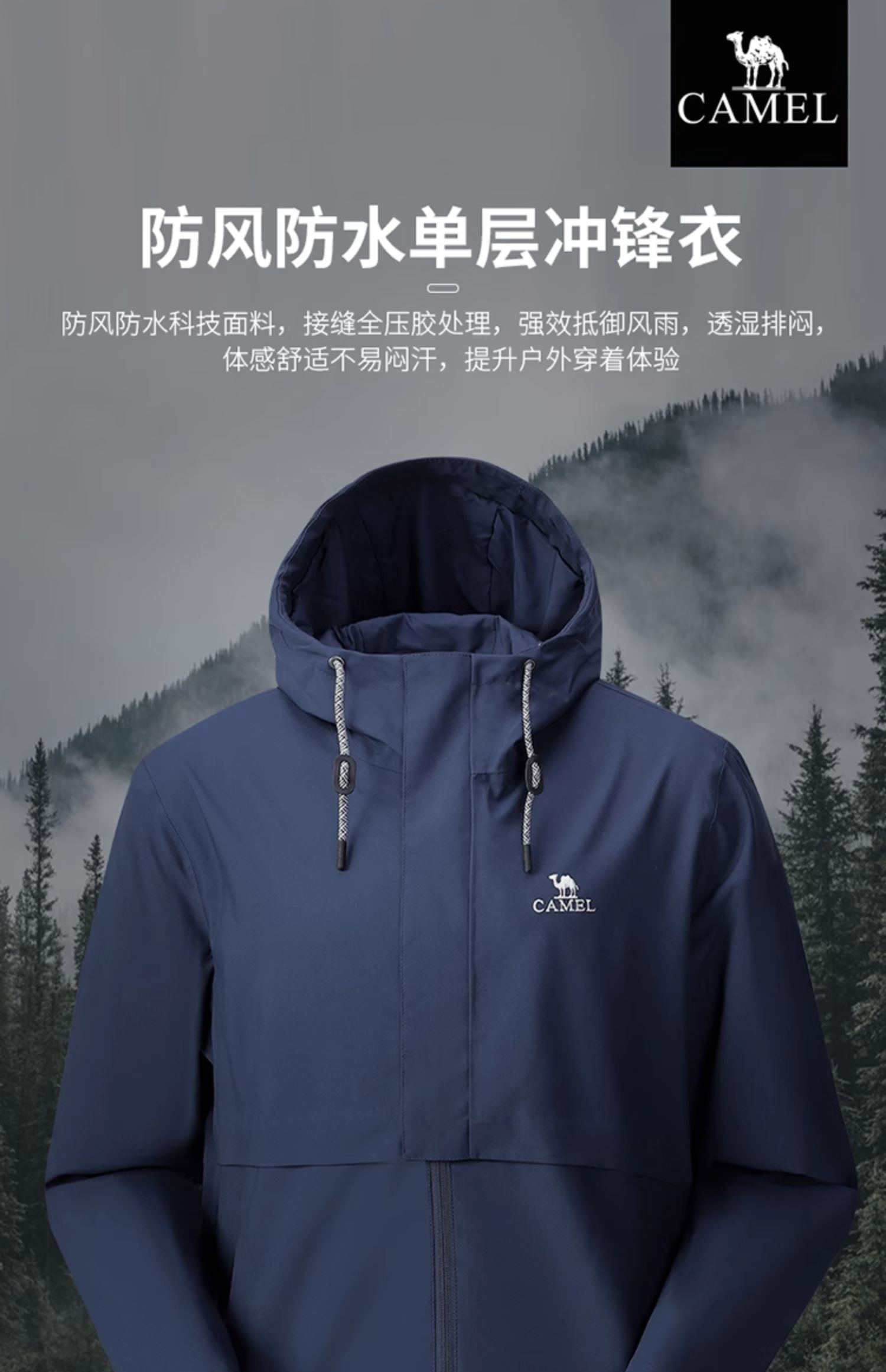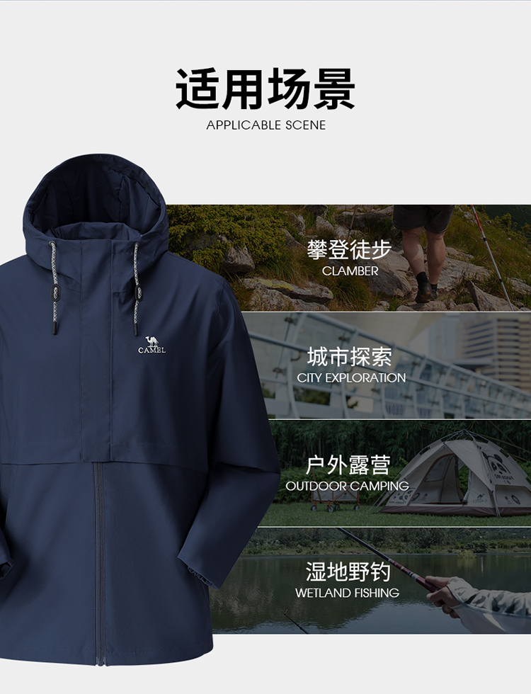 骆驼单层冲锋衣男女春秋薄款潮牌韩版防风防水服装户外旅游外套女 A0W2UH107A_A0W1UH108A