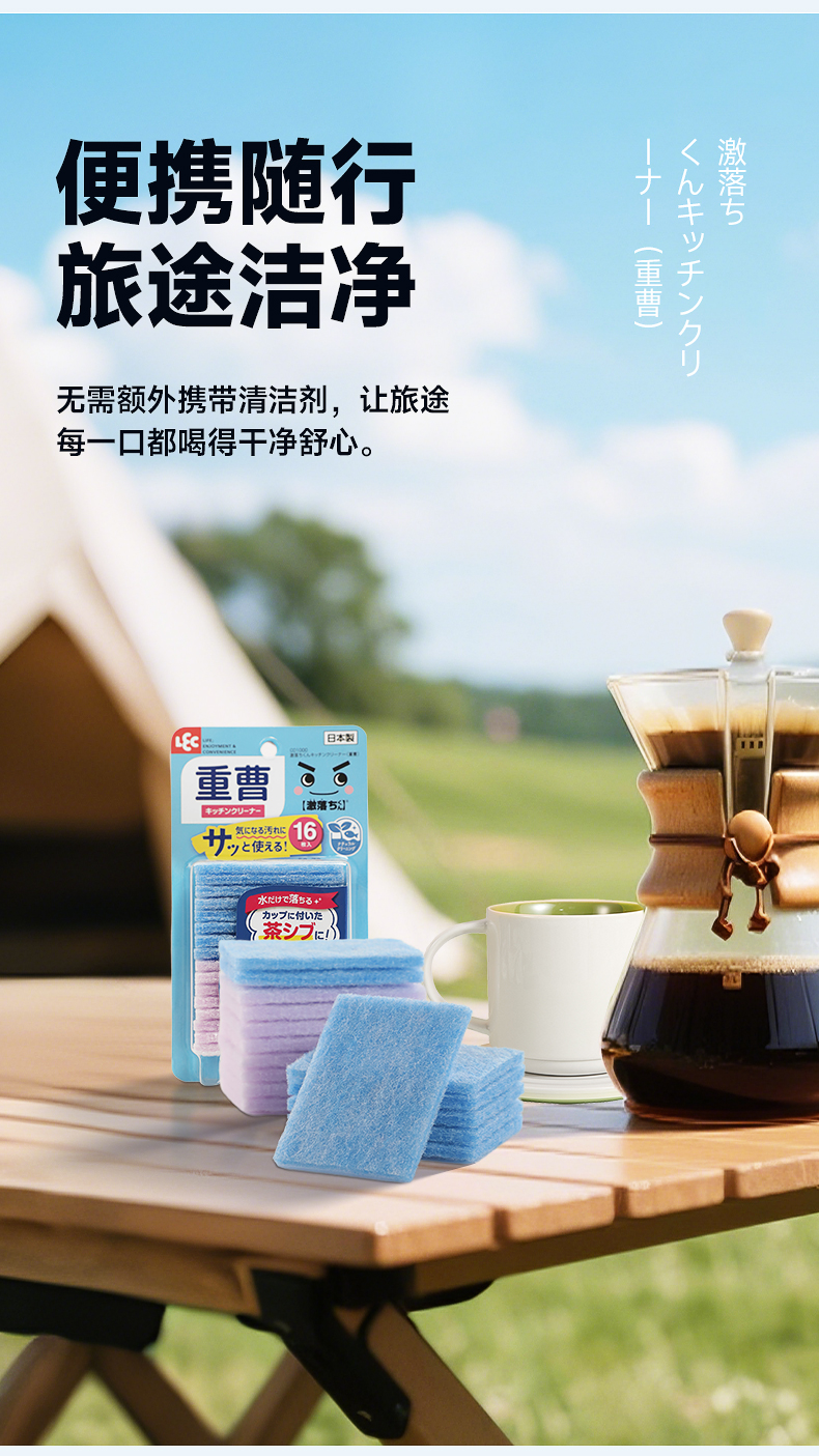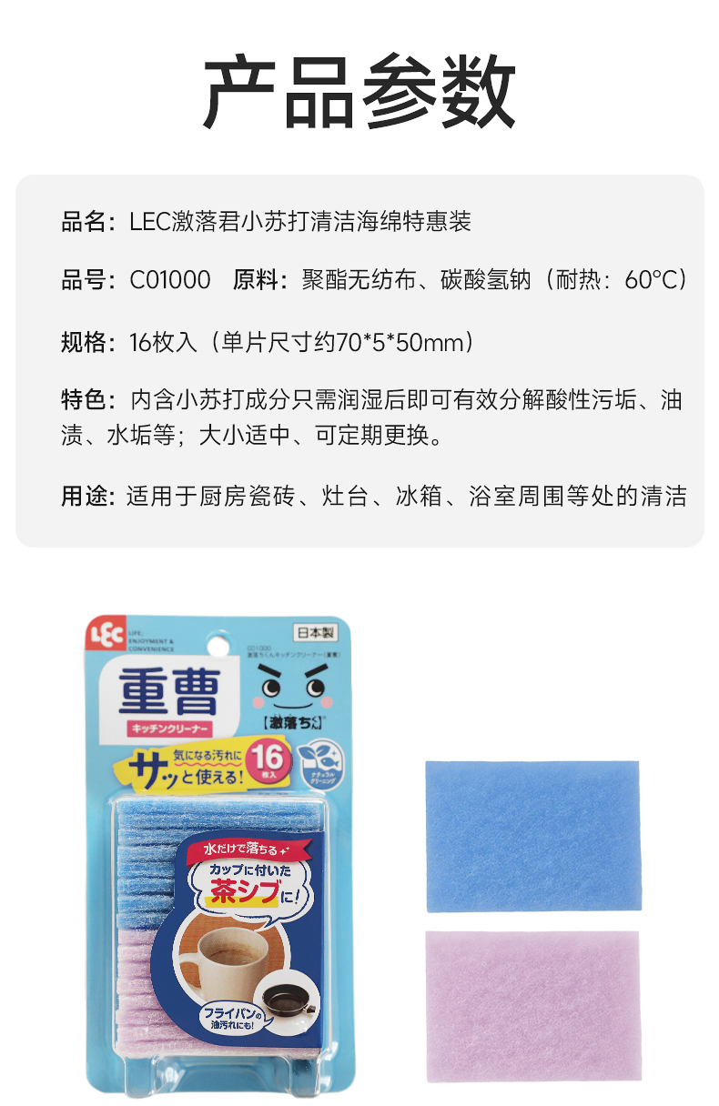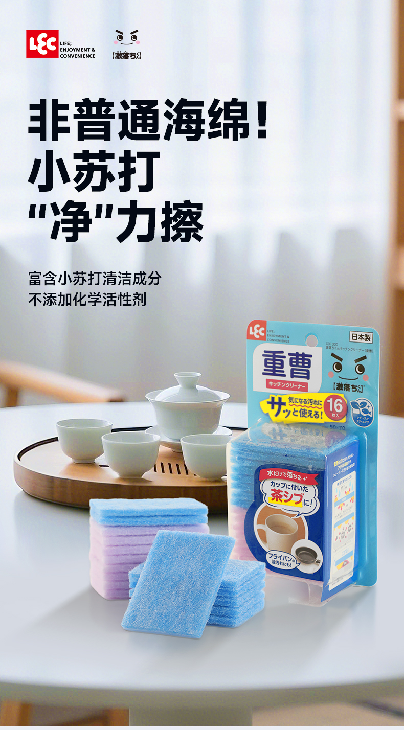 LEC激落君免洗剂厨房茶垢清洁海绵16片装(小苏打)