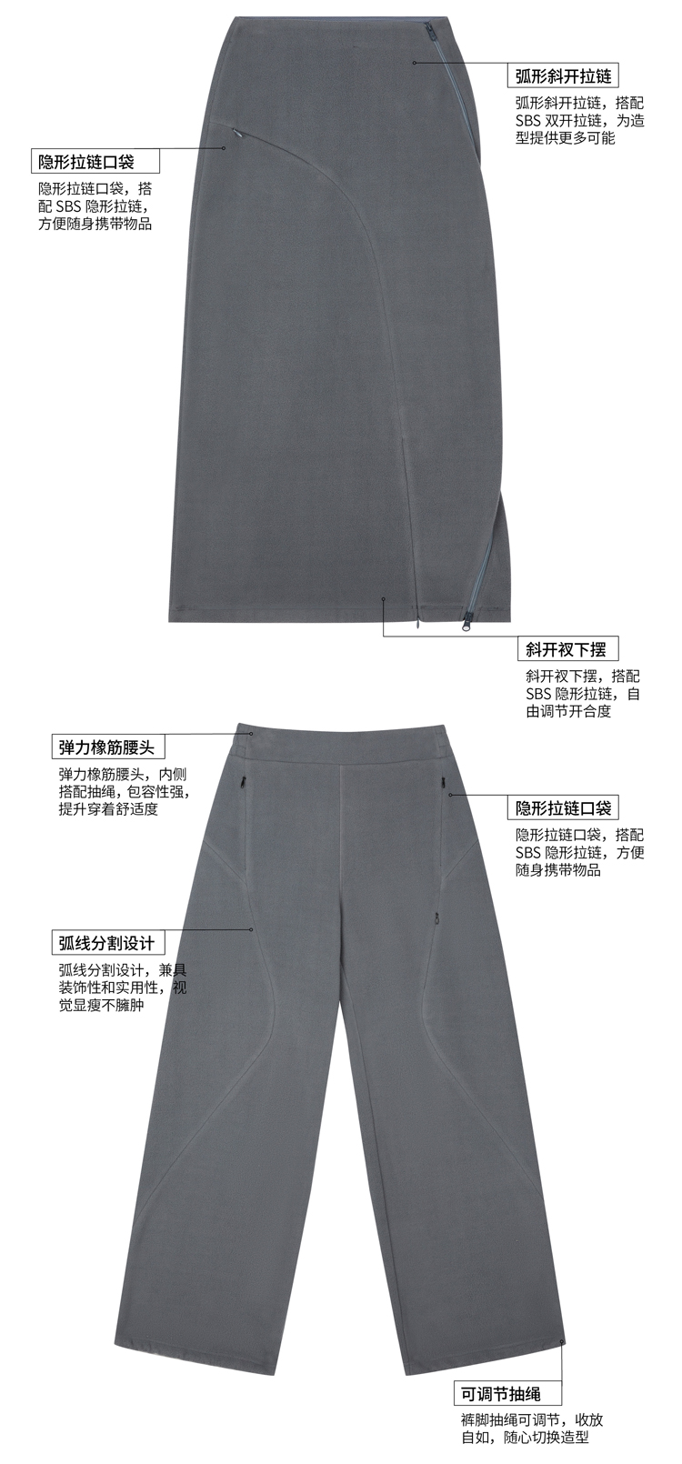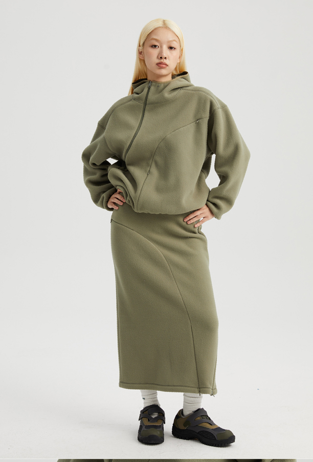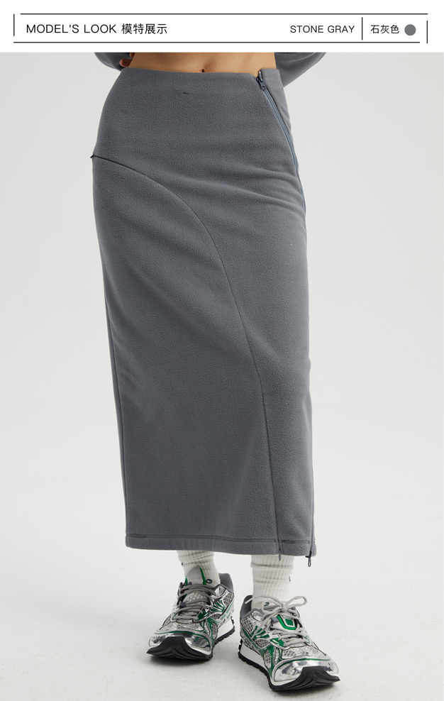 oneup弧线摇粒绒半身裙