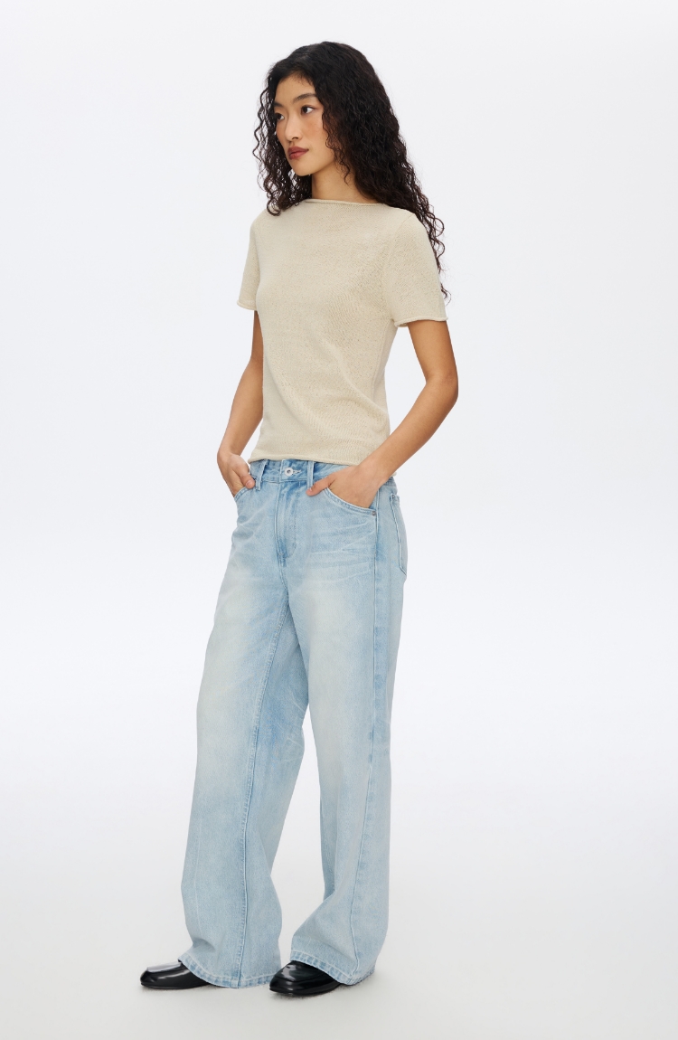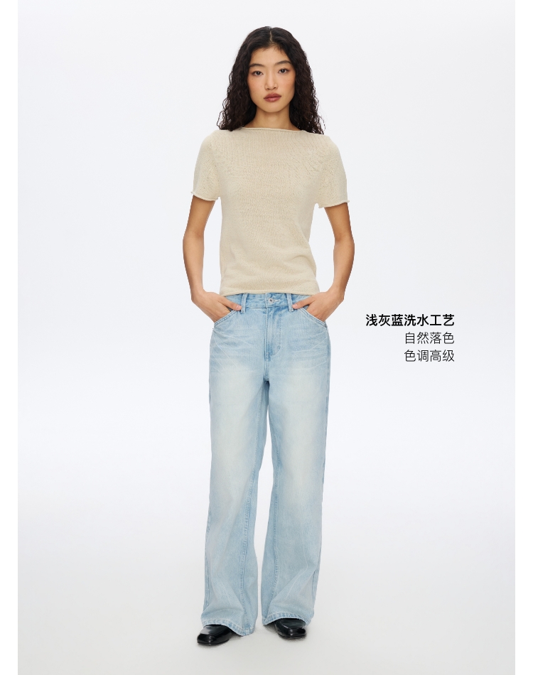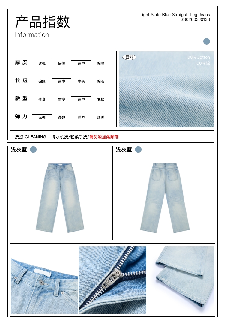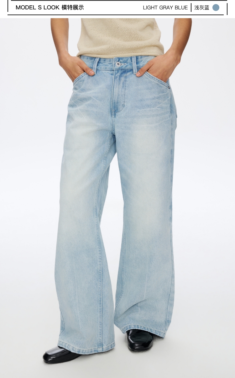 浅灰蓝牛仔直筒�