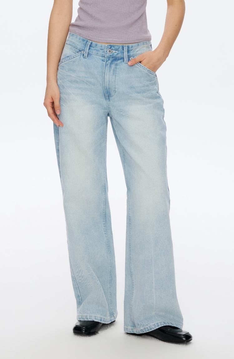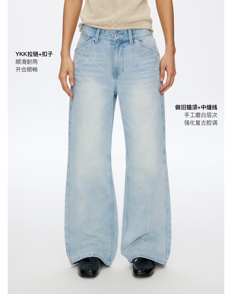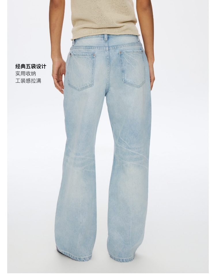 Oneup浅灰蓝牛仔直筒裤