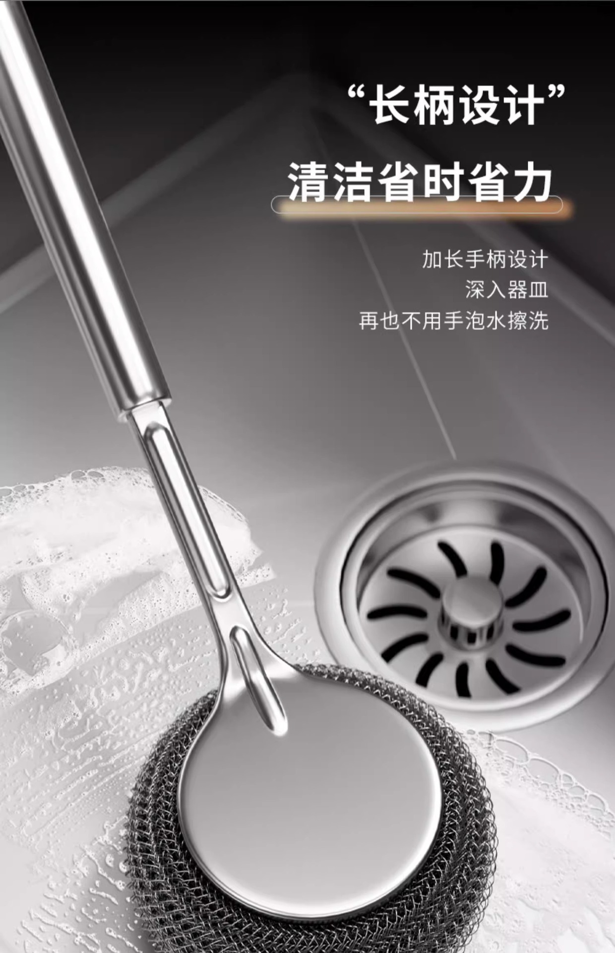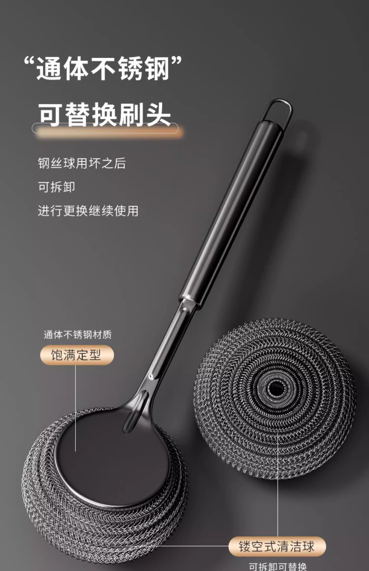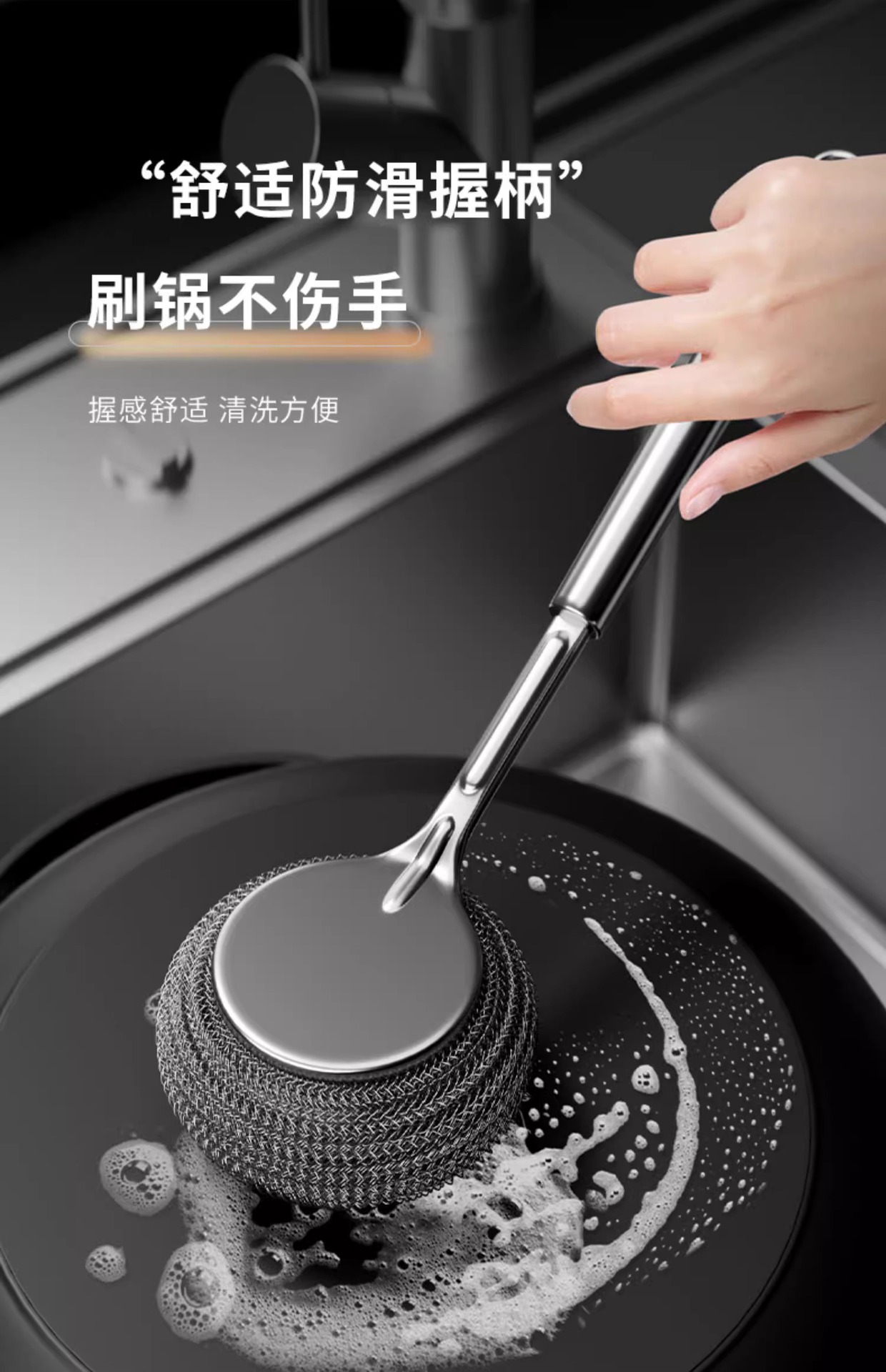 「加赠替换头!新款不锈钢锅刷」厨房用品洗锅钢丝球刷 长柄洗碗清洁工具刷子刷锅