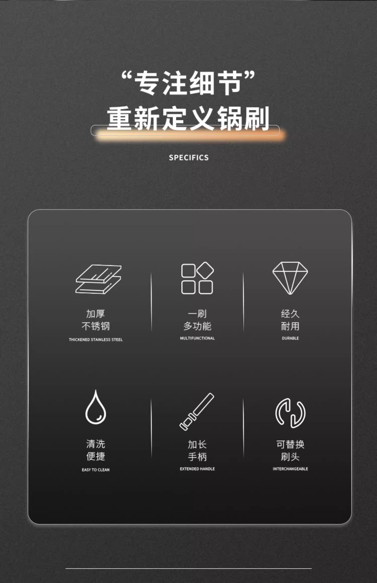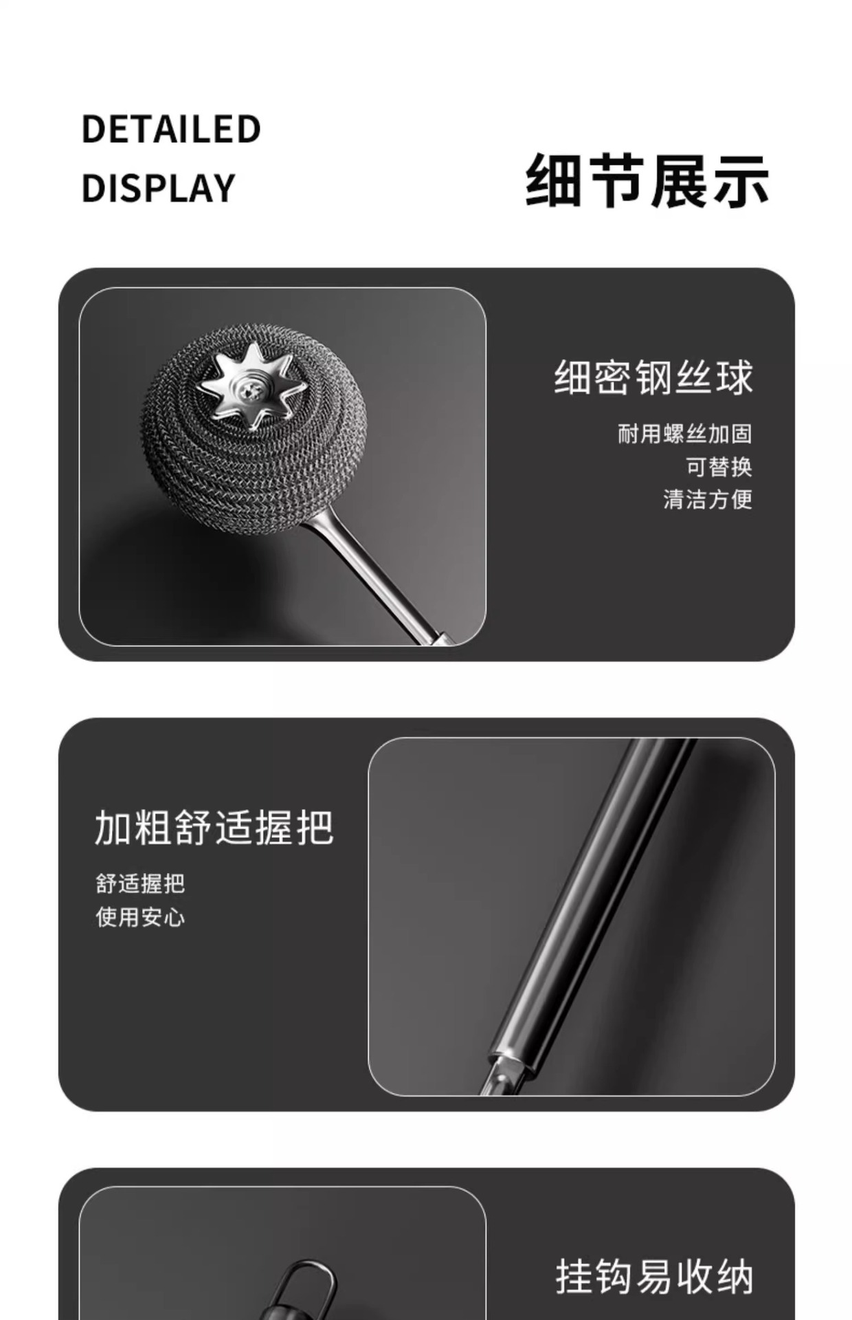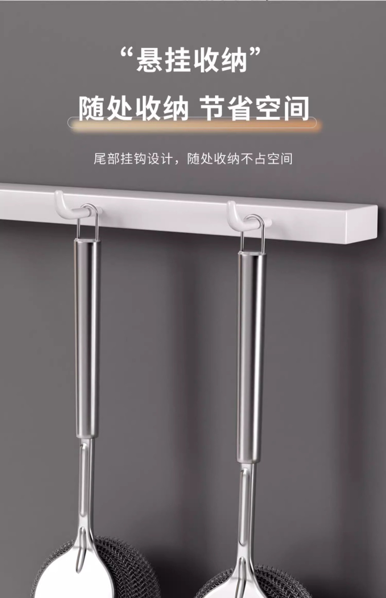 「加赠替换头!新款不锈钢锅刷」厨房用品洗锅钢丝球刷 长柄洗碗清洁工具刷子刷锅