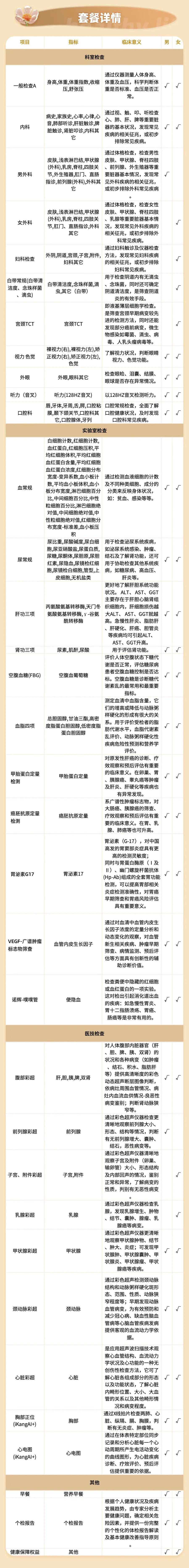 金秋安康体检套餐A(男女通用)适用爱康国宾/国宾VIP/卓悦