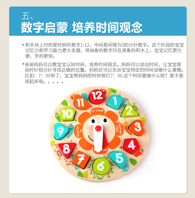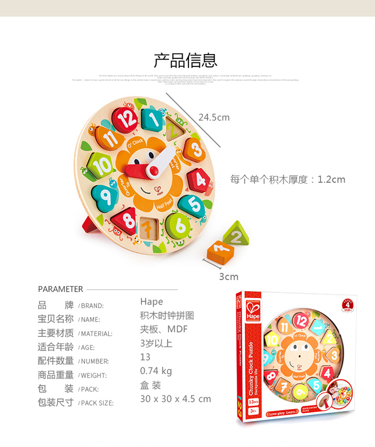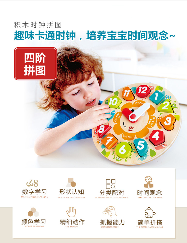 【会员盛典限定】Hape四阶—积木时钟拼图(积分兑礼;5号/8号/12号15点抢!)