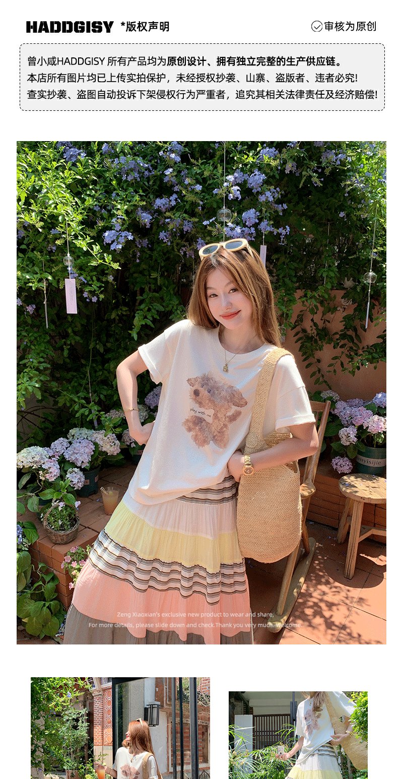 <曾小咸推荐>甜美风字母印花圆领短袖T恤【预售7-15天发货】
