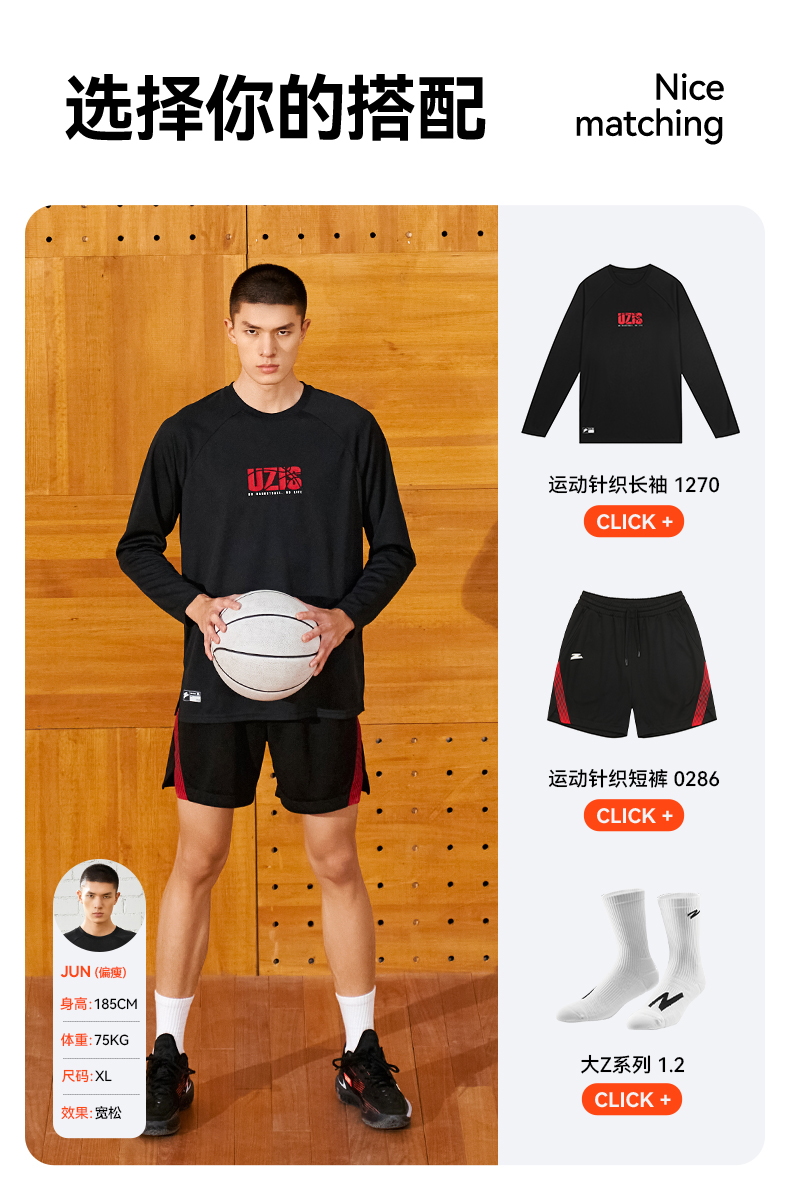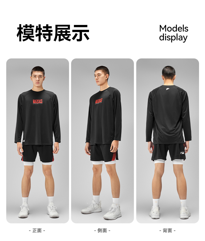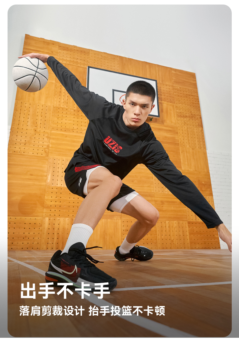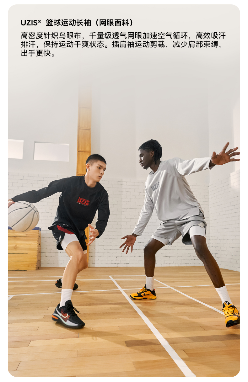 UZIS 运动长袖投篮服男士圆领T恤篮球训练服宽松速干健身服[勋章]