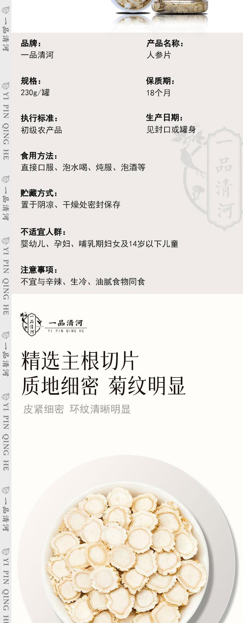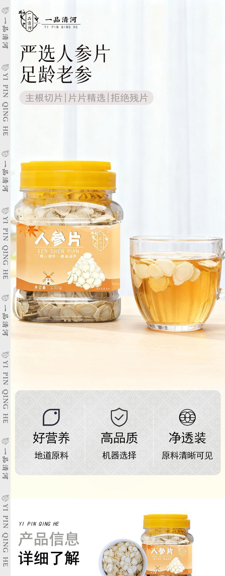 【自营】一品清河 人参片230g 1.4-1.6cm多巴胺罐装 YPQHRSP230G
