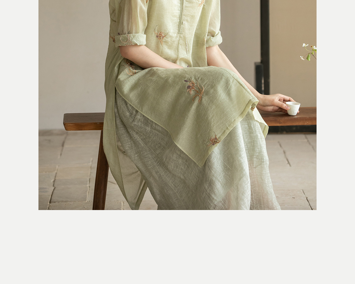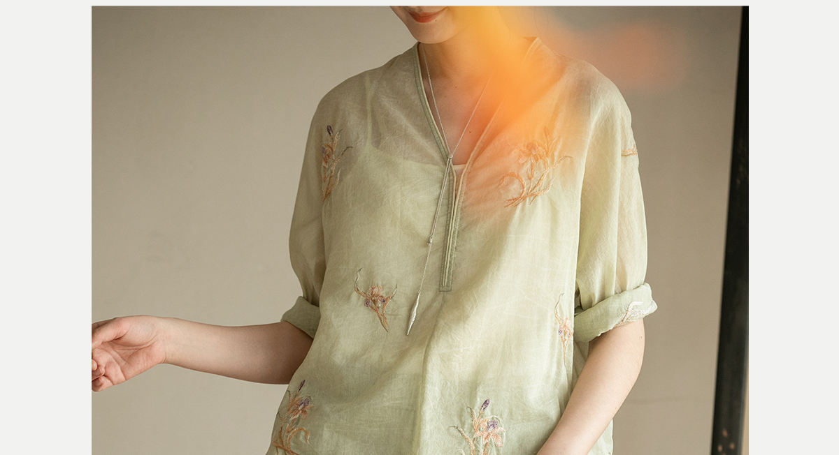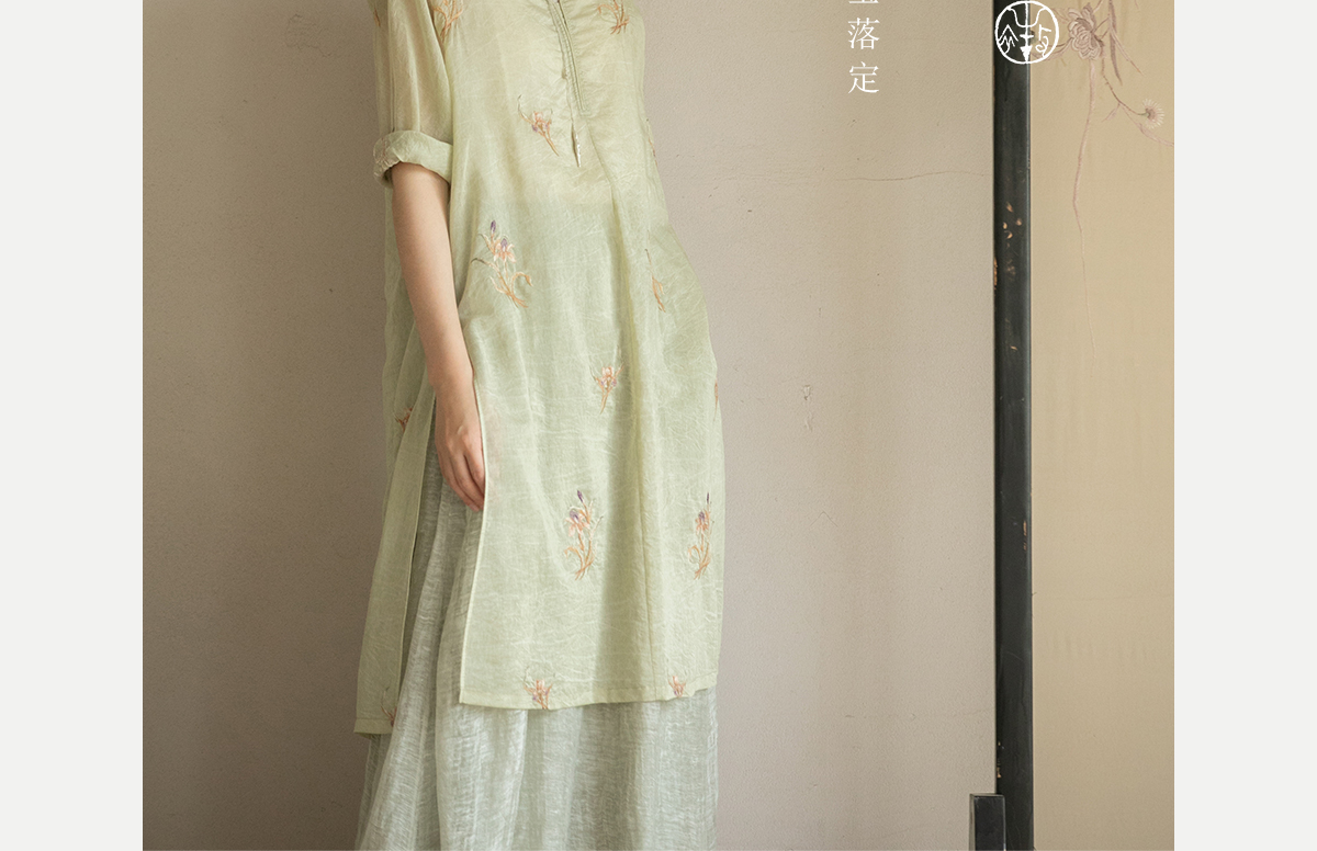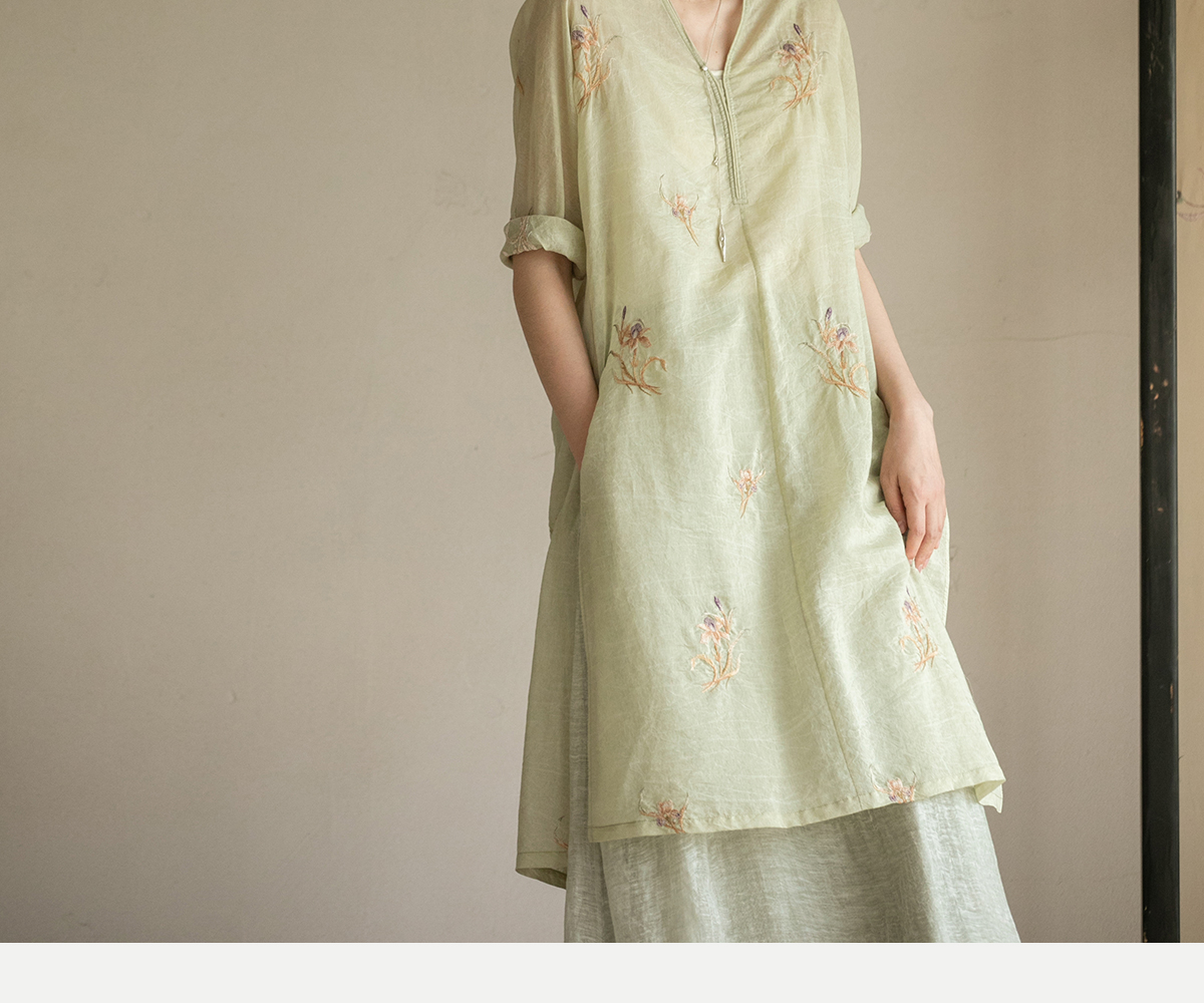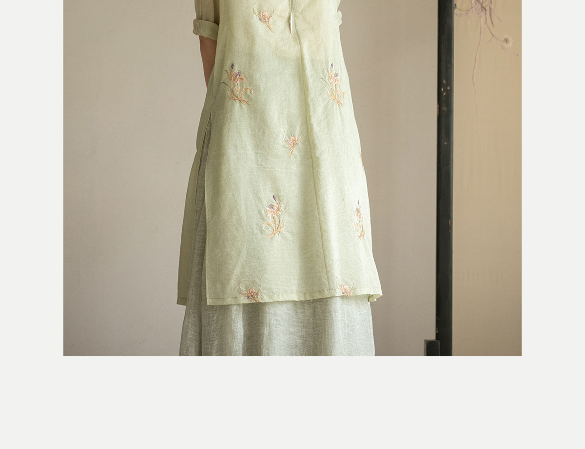 牧衣游原创 丝棉刺绣衬衫女夏新款素雅文艺宽松中长款上衣 寻墨