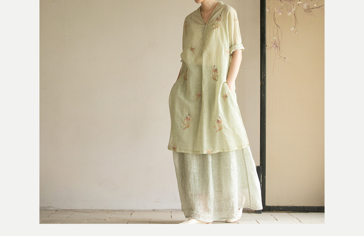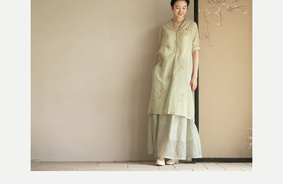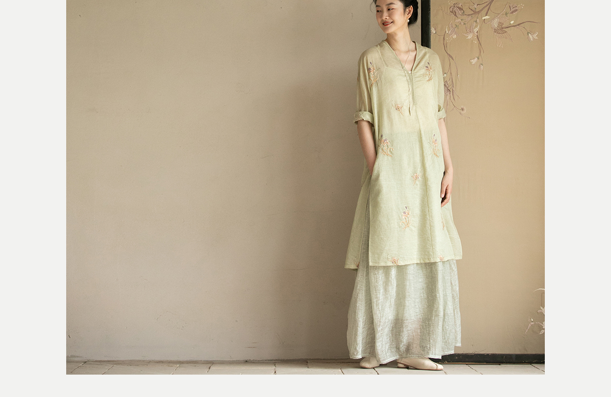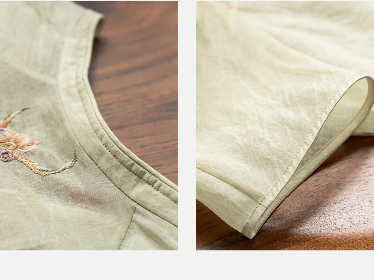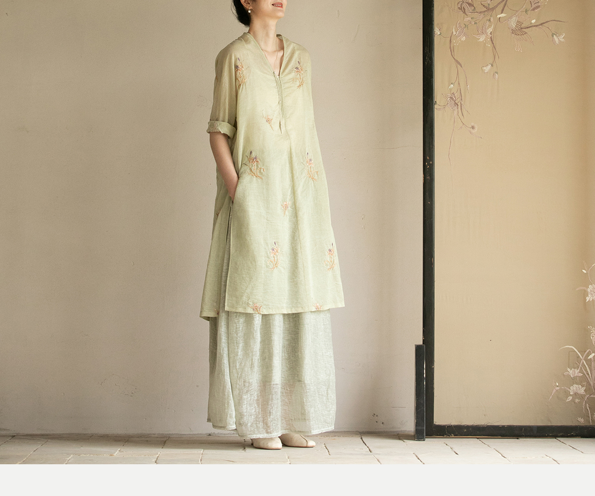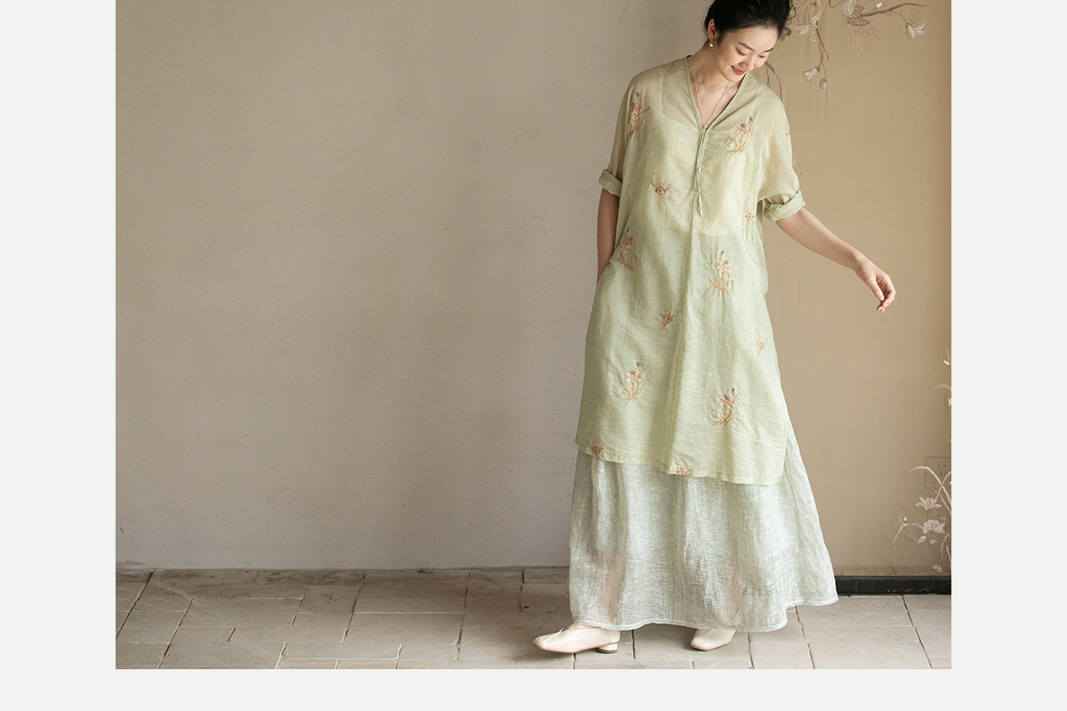 牧衣游原创 丝棉刺绣衬衫女夏新款素雅文艺宽松中长款上衣 寻墨