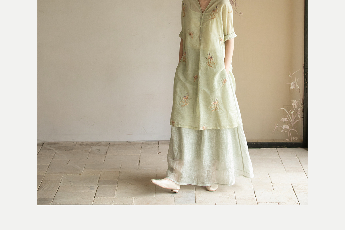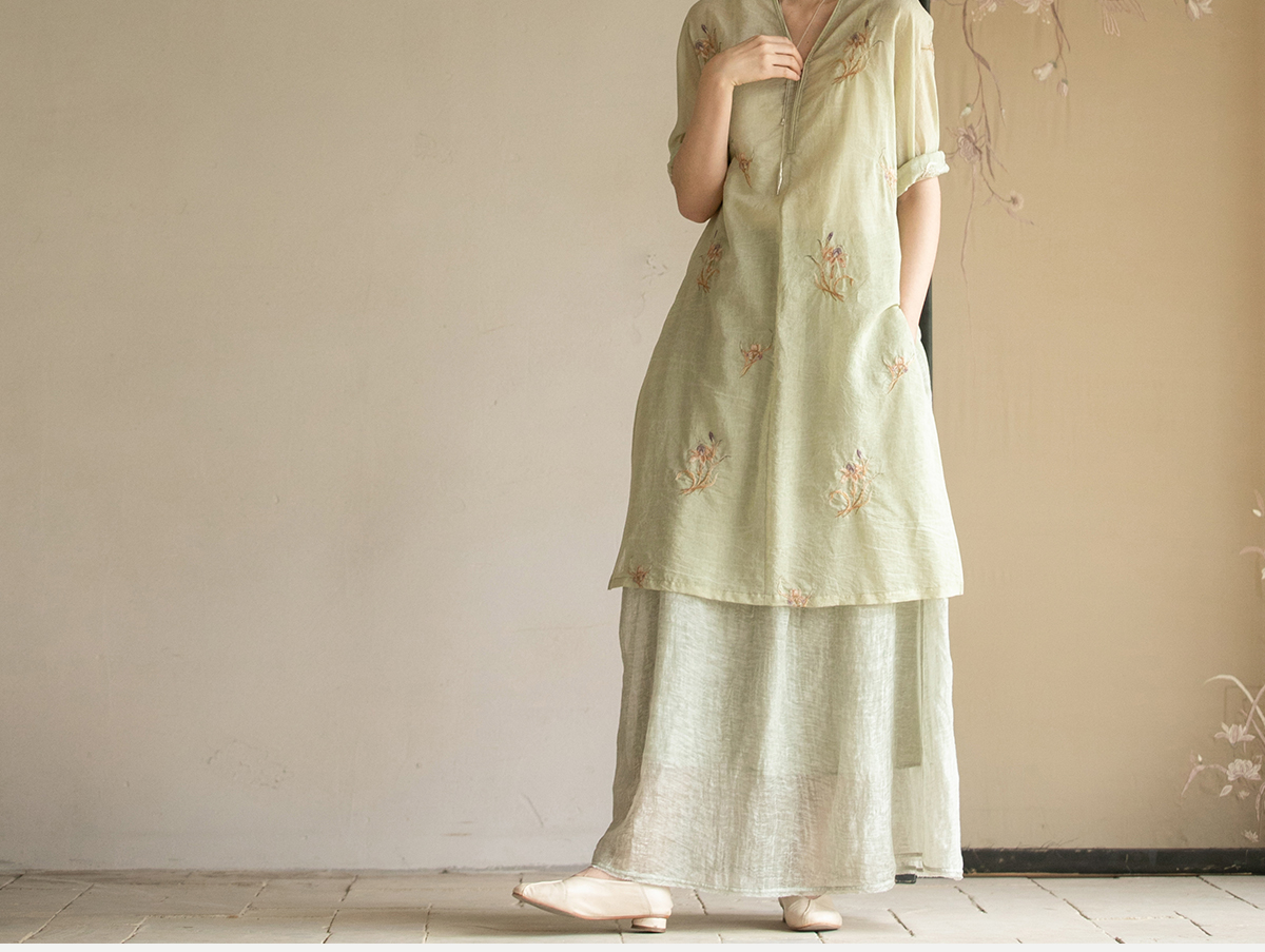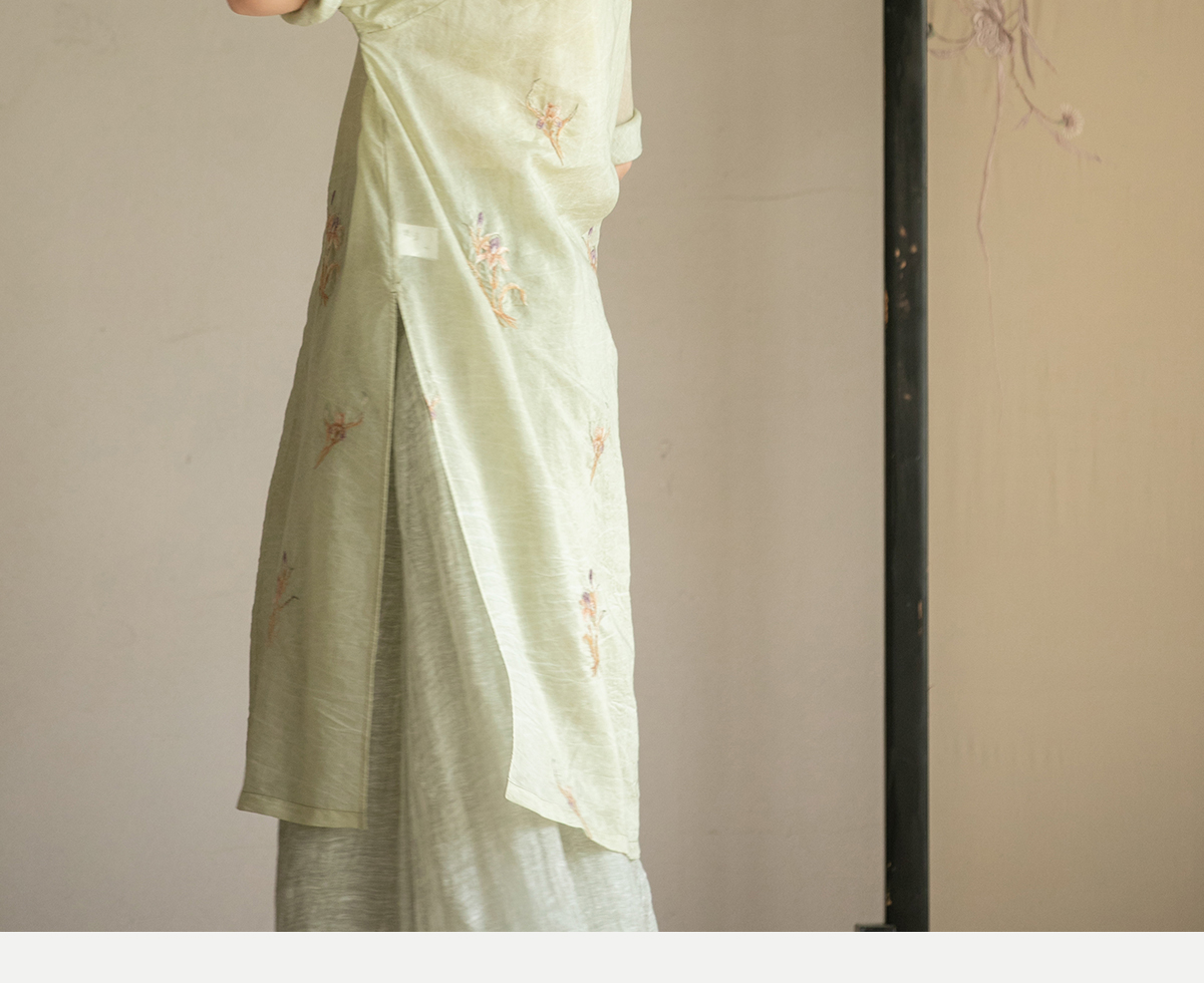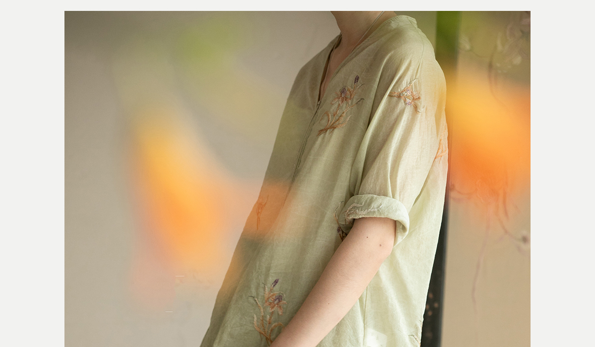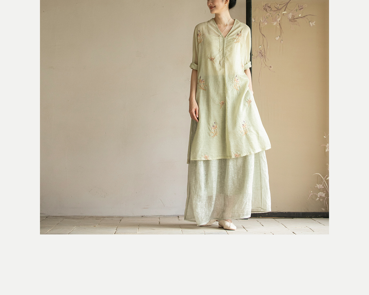 牧衣游原创 丝棉刺绣衬衫女夏新款素雅文艺宽松中长款上衣 寻墨