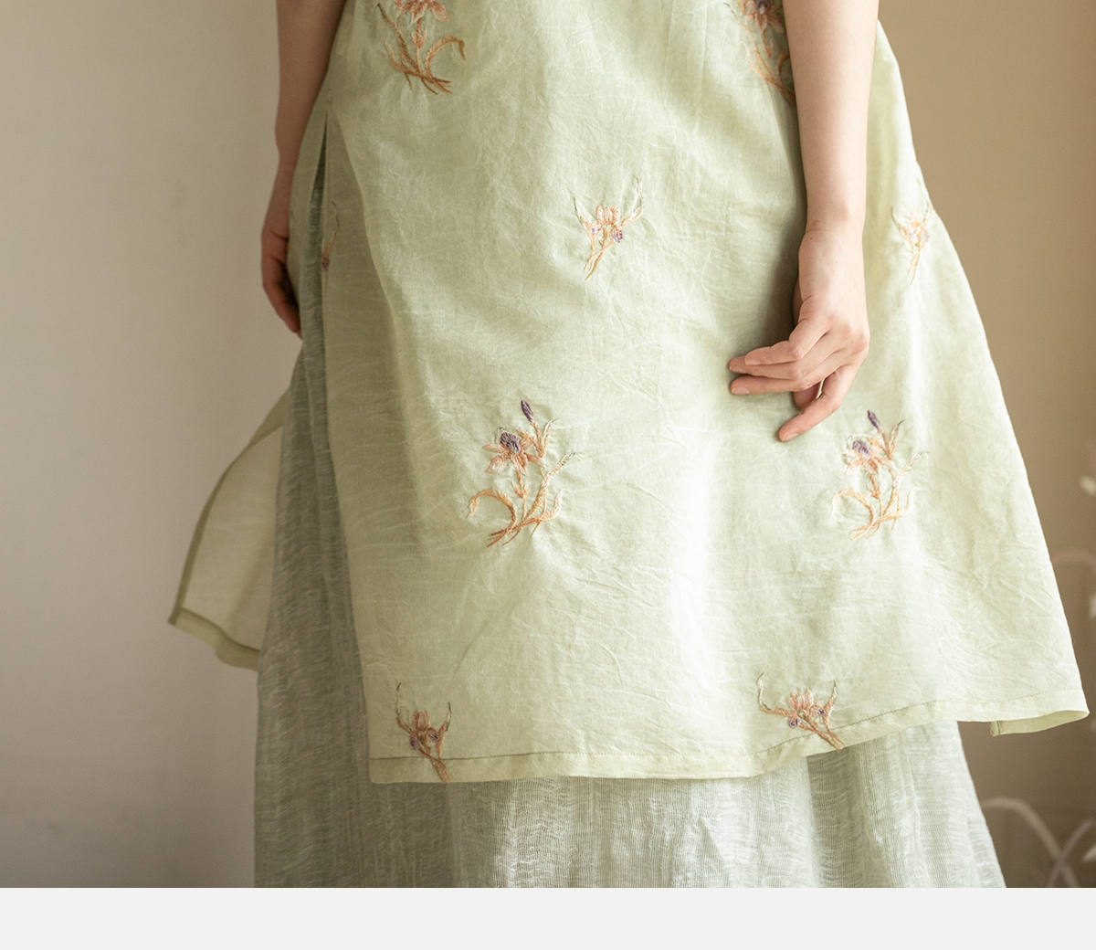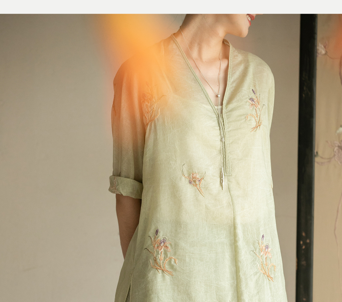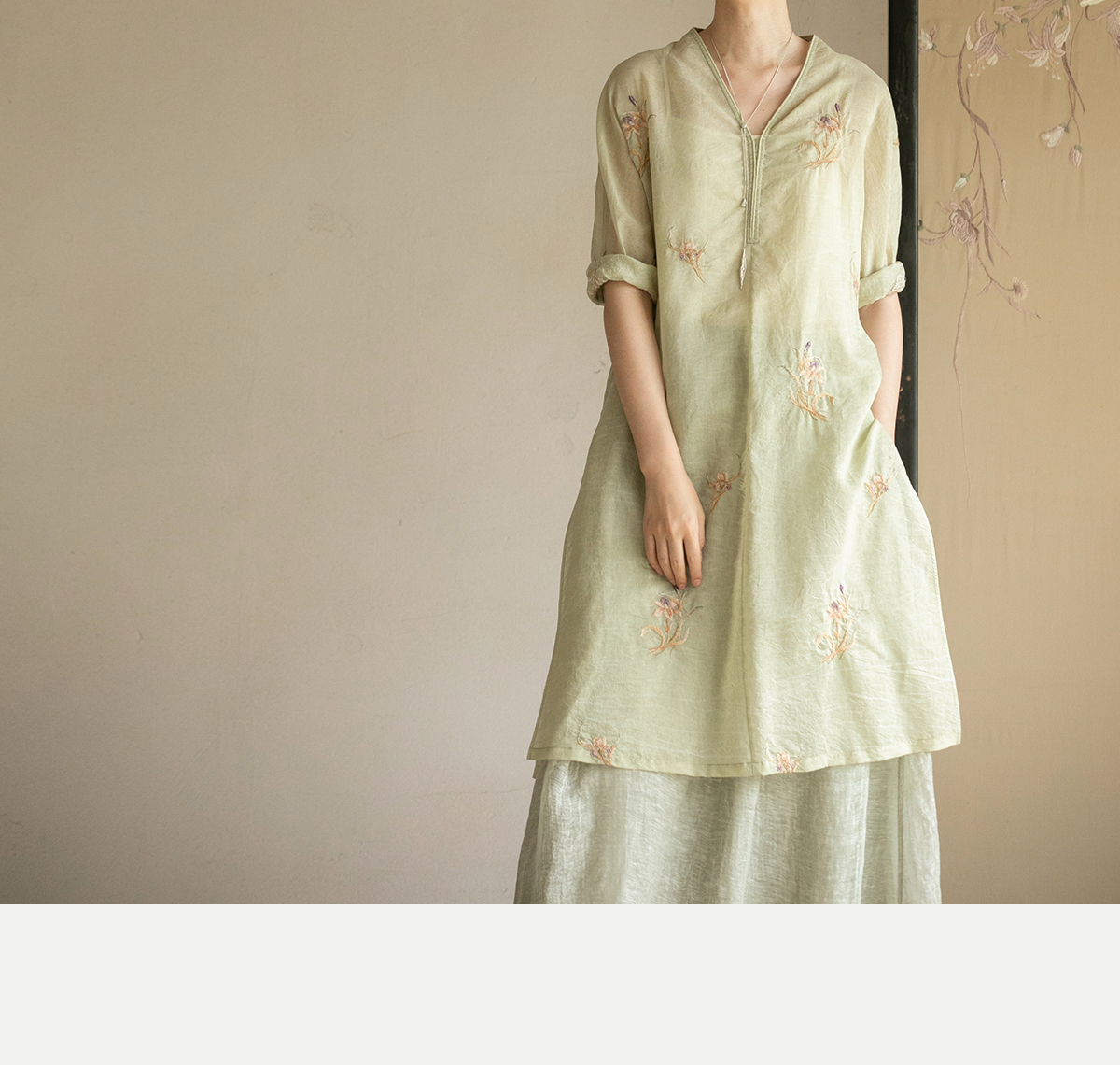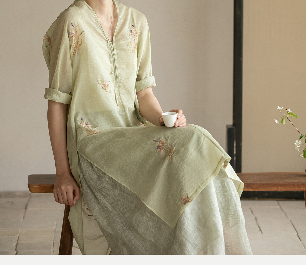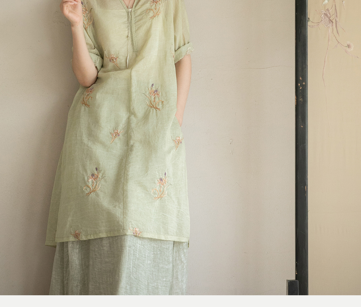 牧衣游原创 丝棉刺绣衬衫女夏新款素雅文艺宽松中长款上衣 寻墨