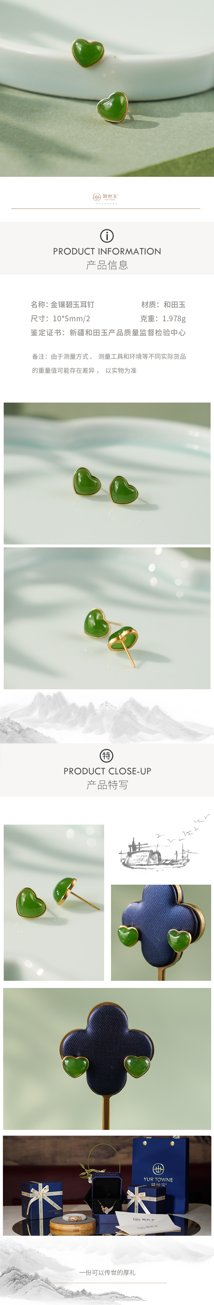 【瑾莳】18K玫瑰金镶碧玉耳钉