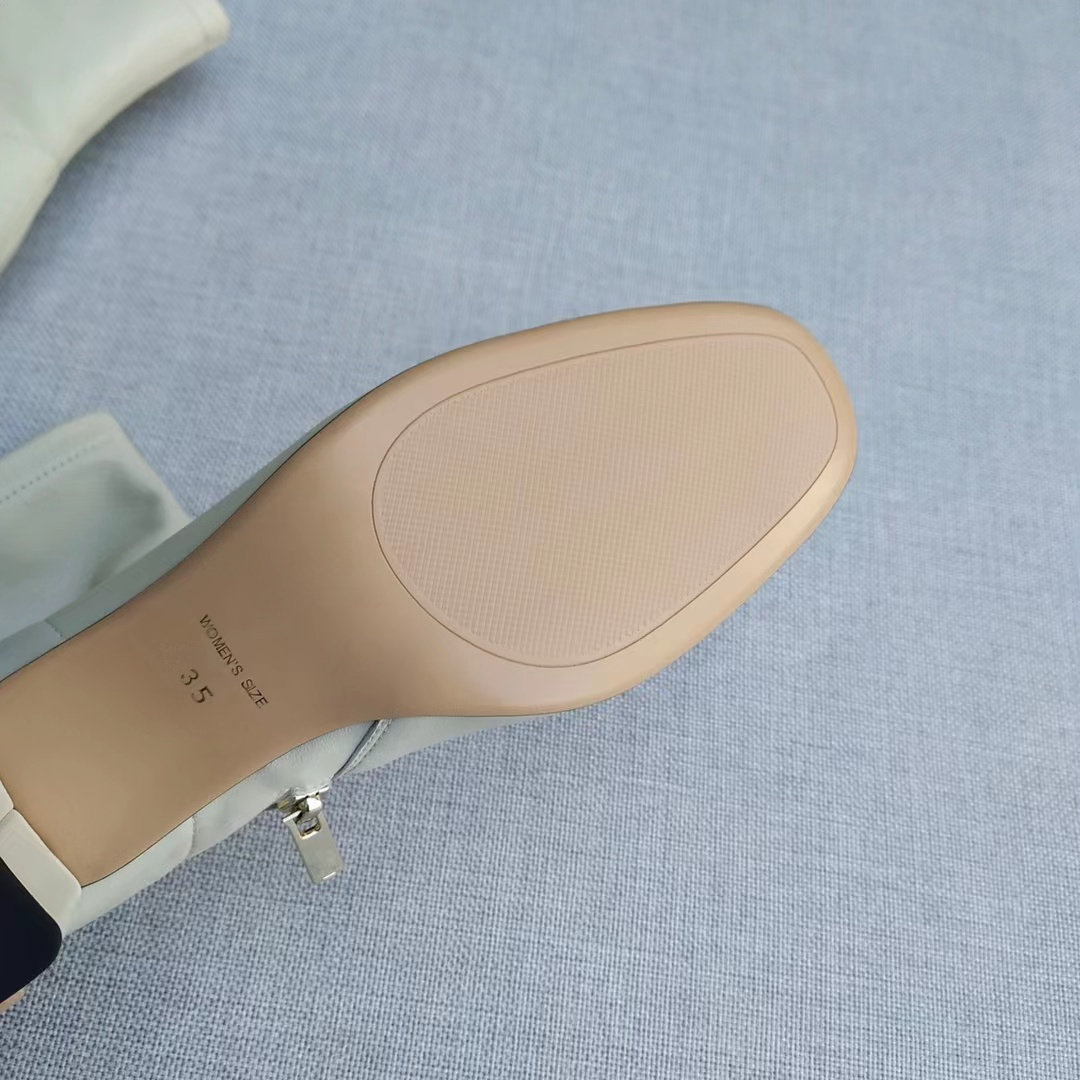 [偏大一码,往小一码拍!](跟高4.8cm)火桐hooton 女神小白靴粗跟拉链短靴870H