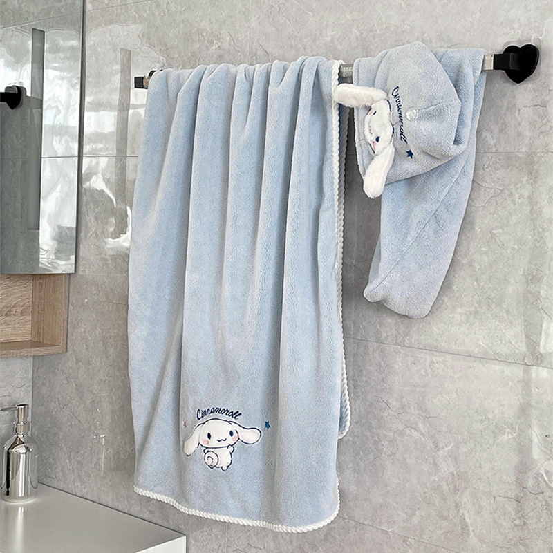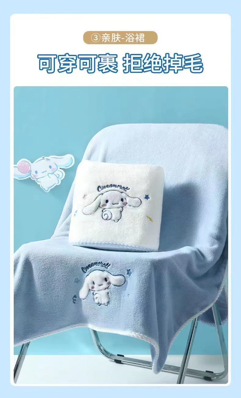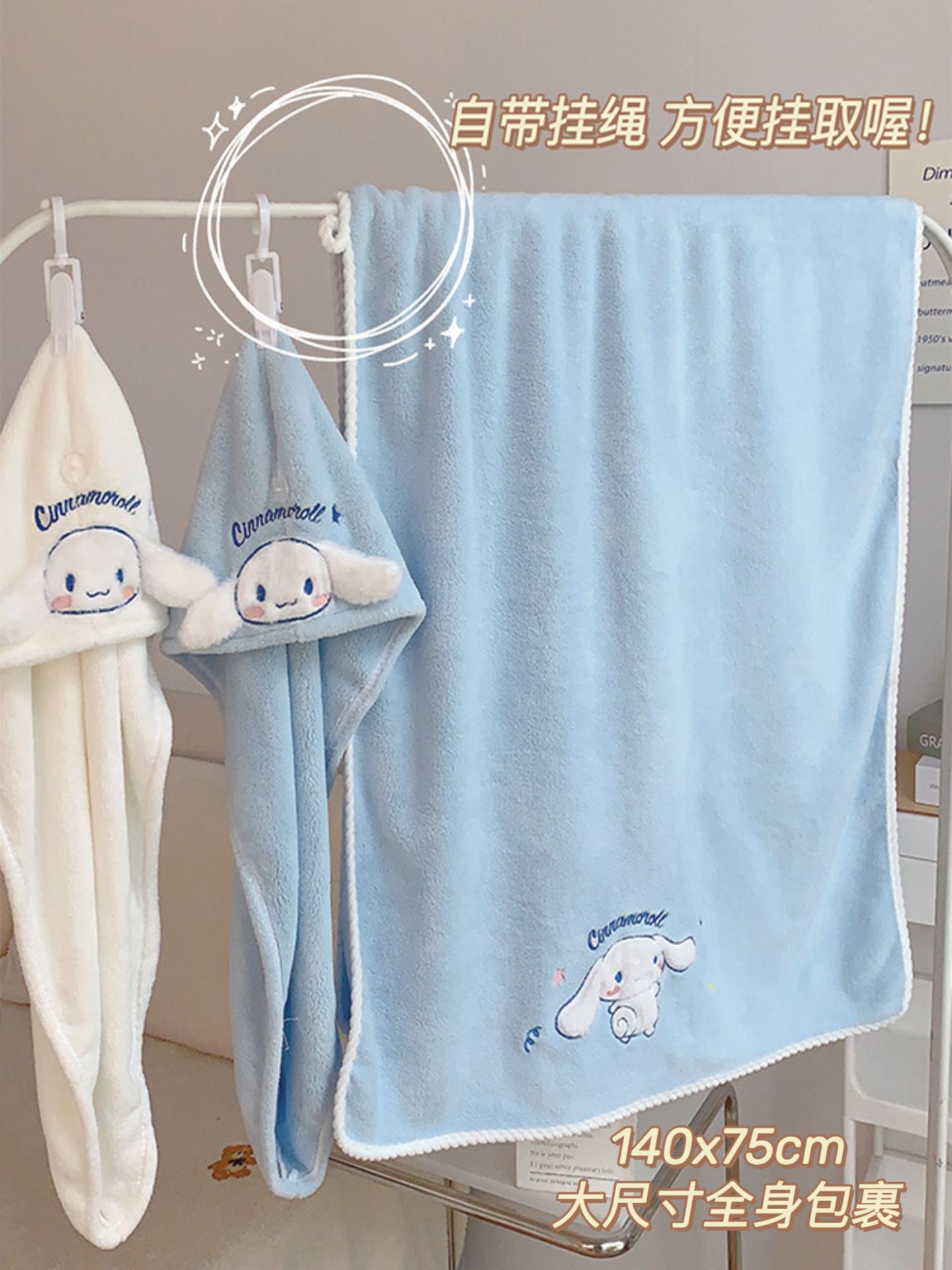 毛巾+浴巾+干发帽三件套组合 三丽鸥玉桂狗洗脸毛巾干发帽is风女可穿可裹成人儿童卡通洗澡浴巾