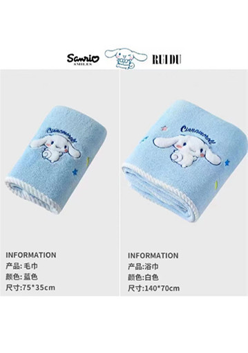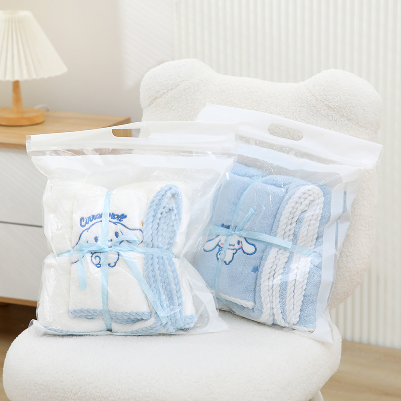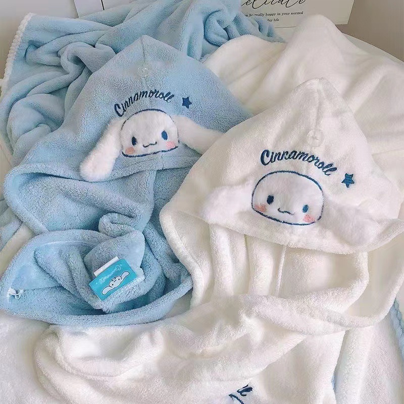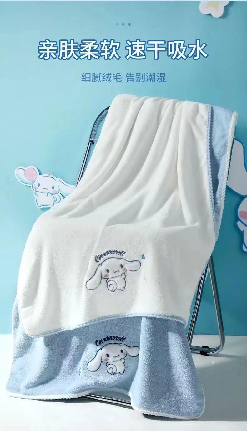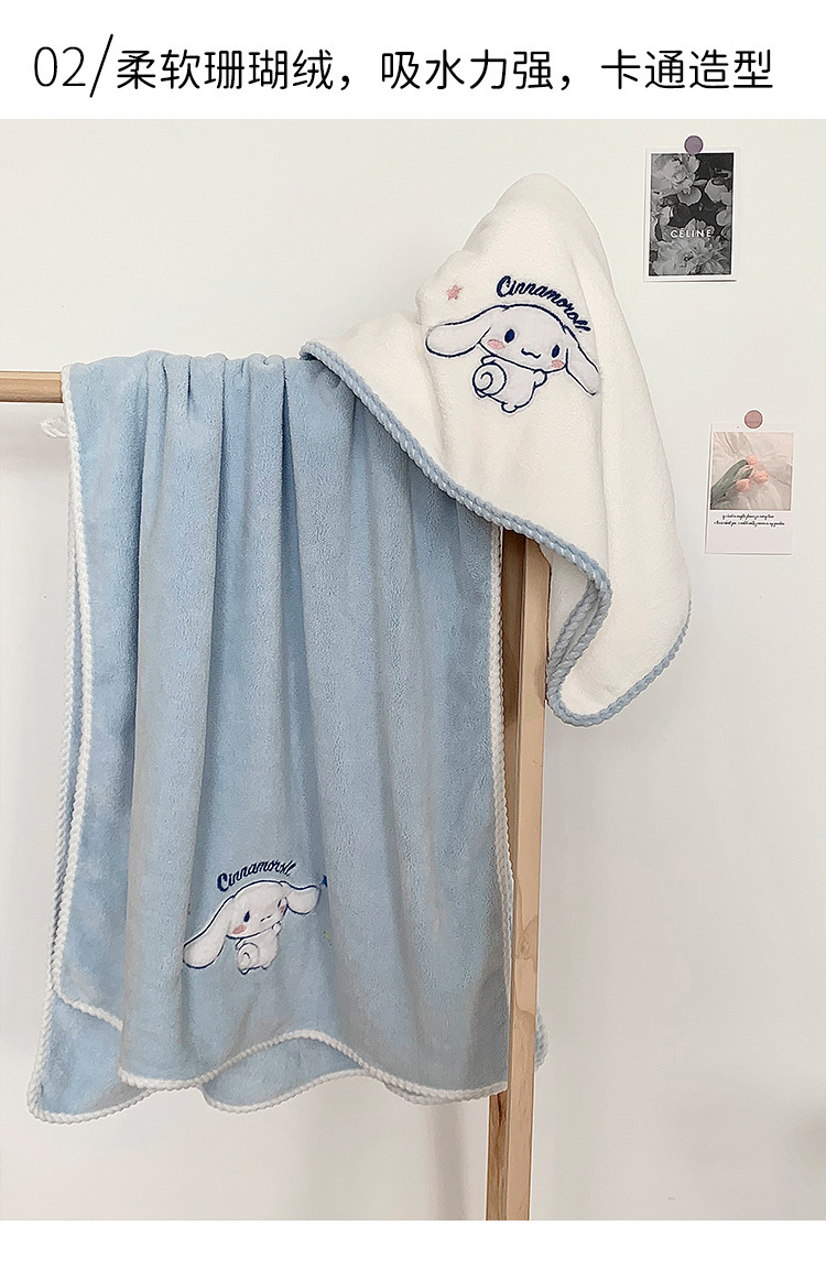 毛巾+浴巾+干发帽三件套组合 三丽鸥玉桂狗洗脸毛巾干发帽is风女可穿可裹成人儿童卡通洗澡浴巾