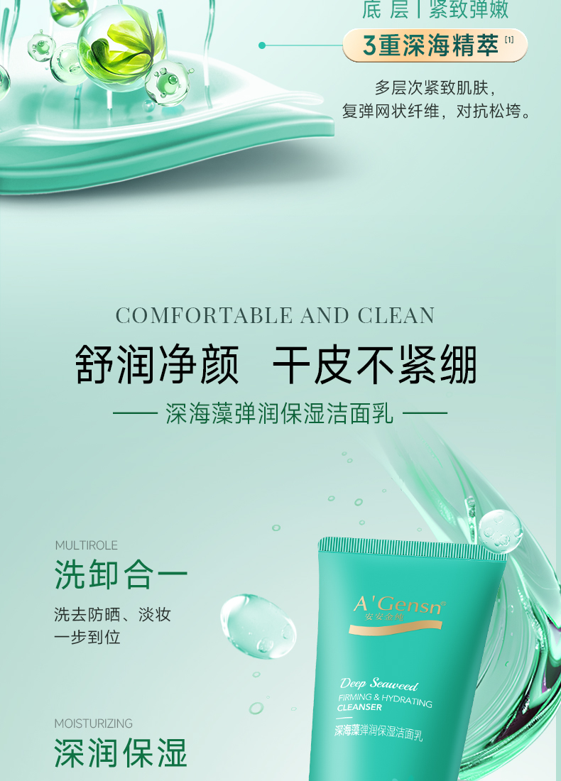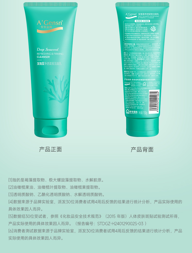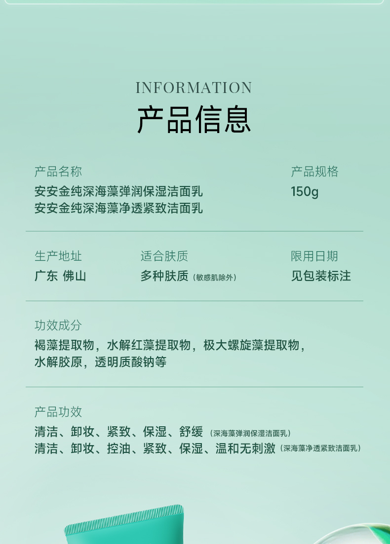 安安金纯深海藻净透紧致洁面乳/弹润保湿洁面乳【龙菲精选】