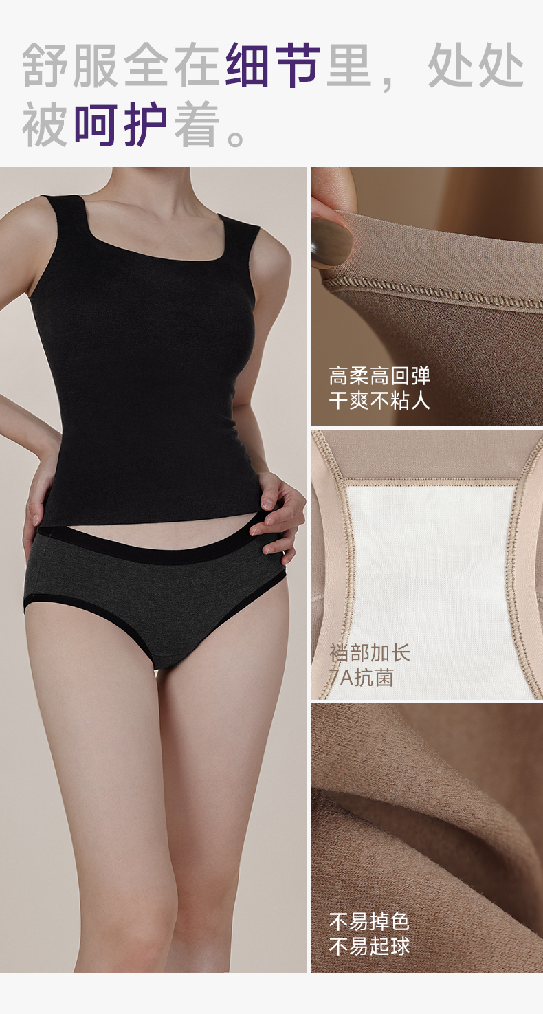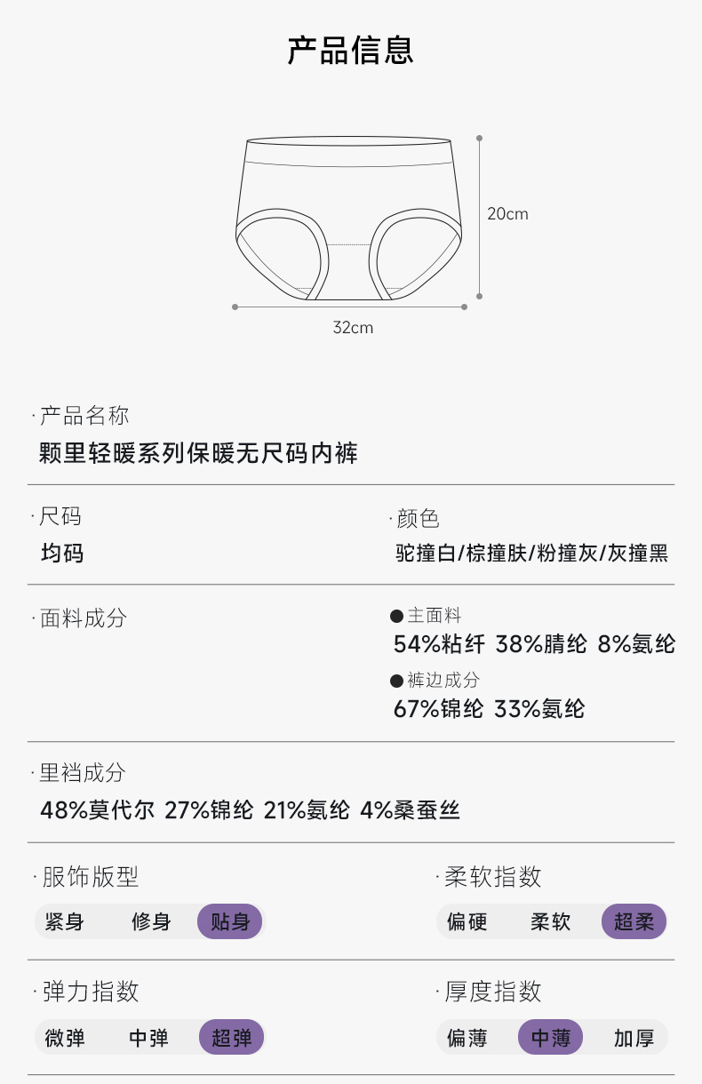 【真舒服】ChrissieMorris 颗里轻暖系列保暖无尺码中低腰内裤3条组合 裆部7A抗菌