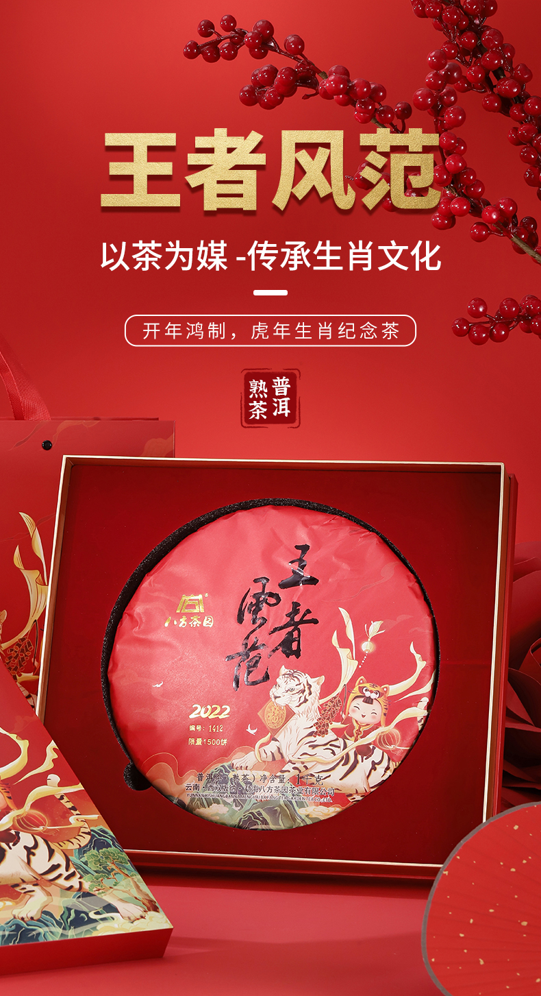【限量发售】八方茶园 2022年王者风范饼 普洱茶 虎年生肖纪念茶【天猫同款】