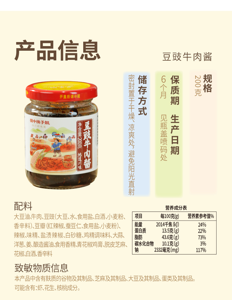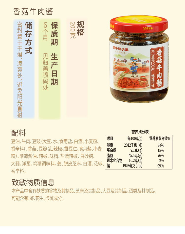 【自营】香菇牛肉酱200g/豆豉牛肉酱200g(两瓶装)