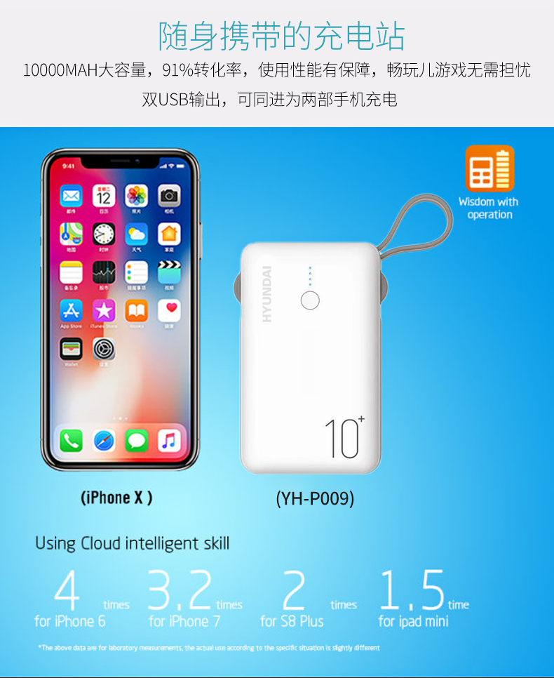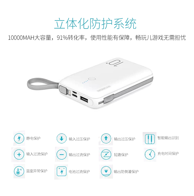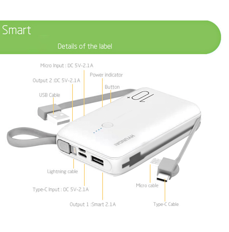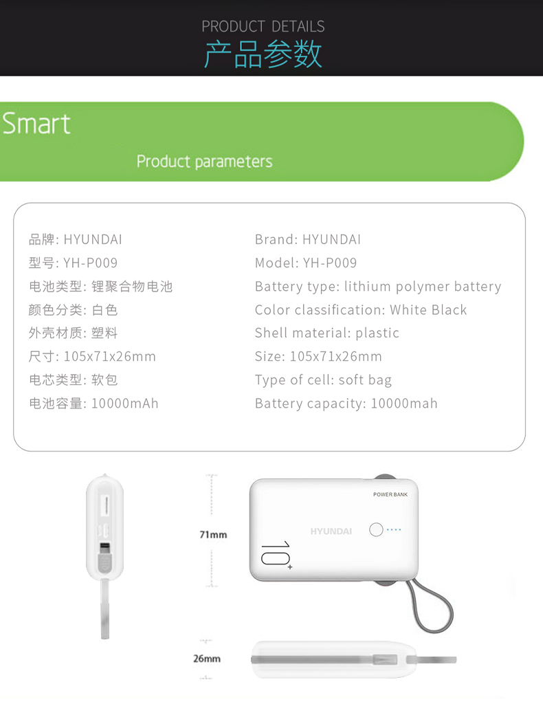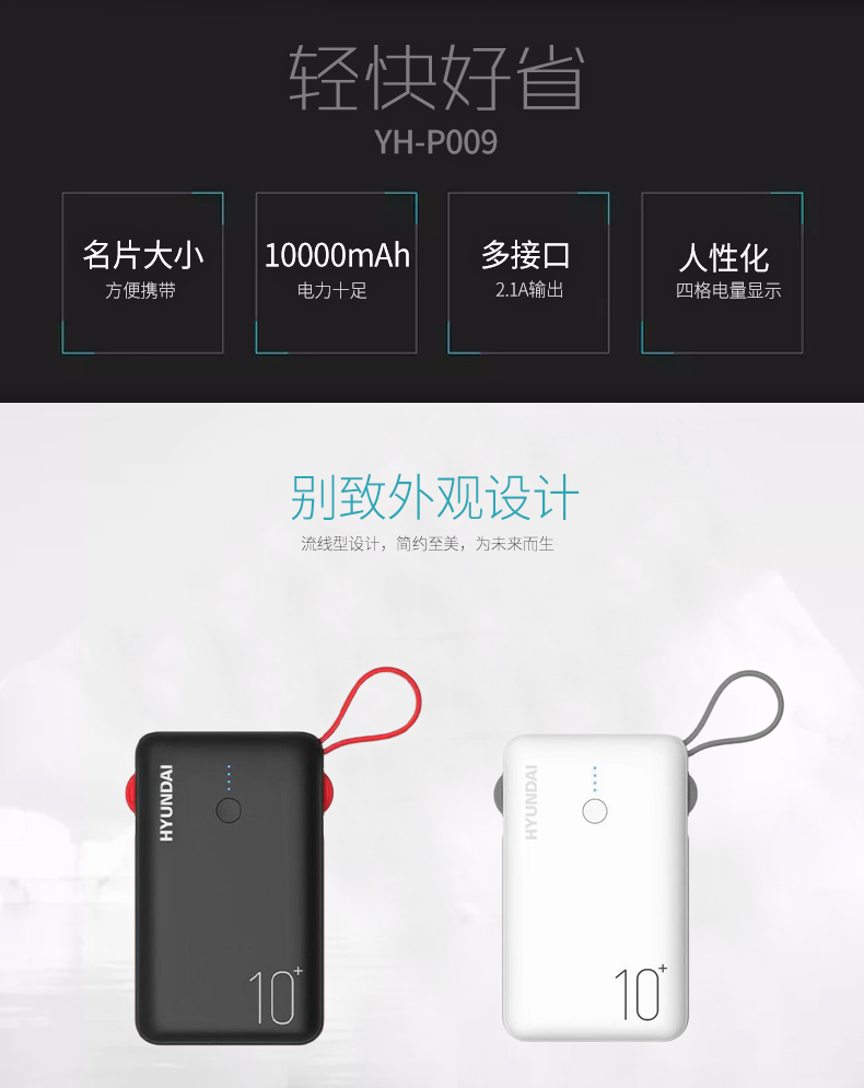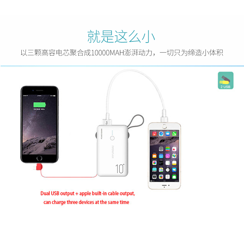 现代HYUNDAI便携挂绳带一拖三移动电源YH-P009