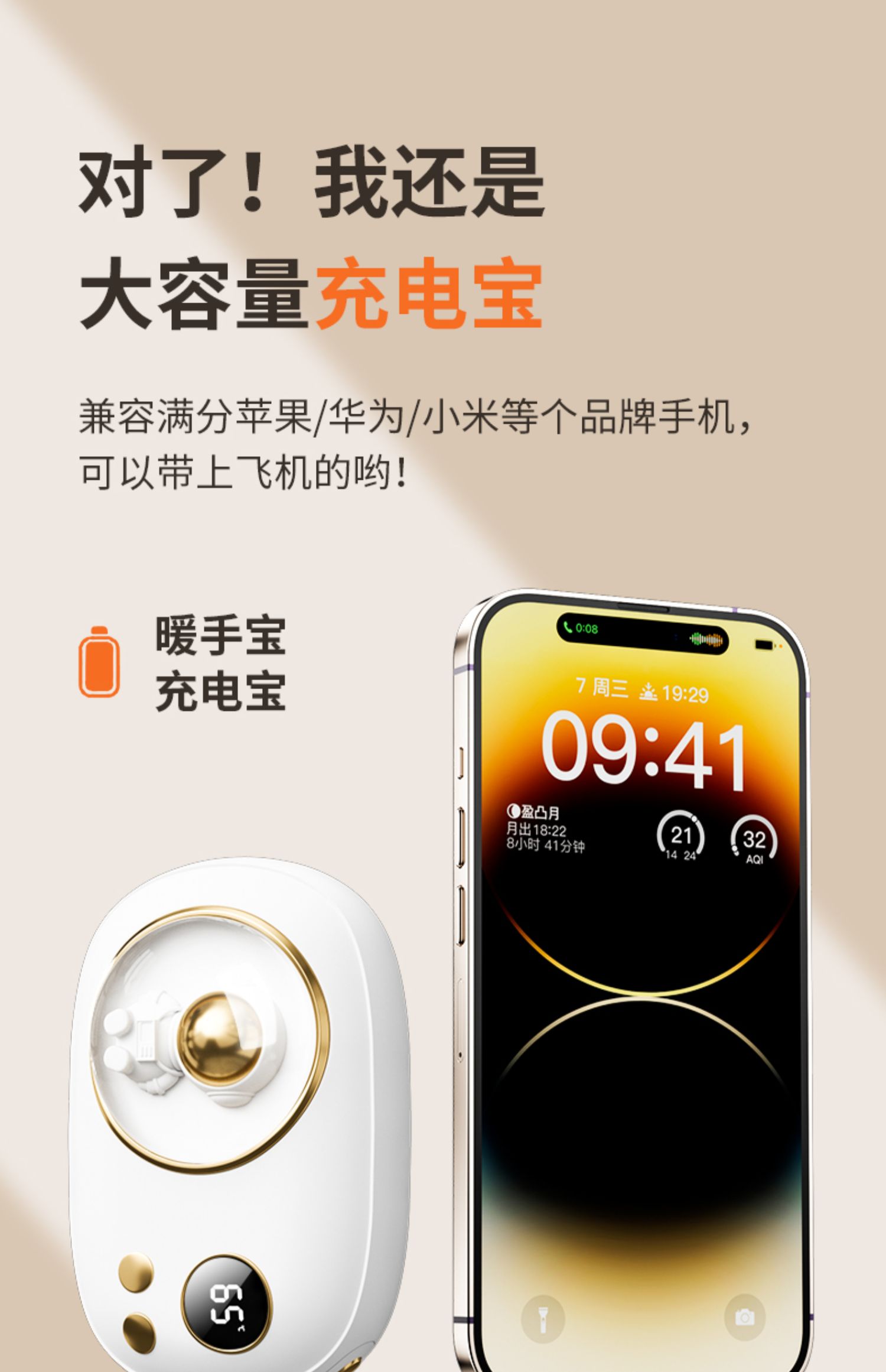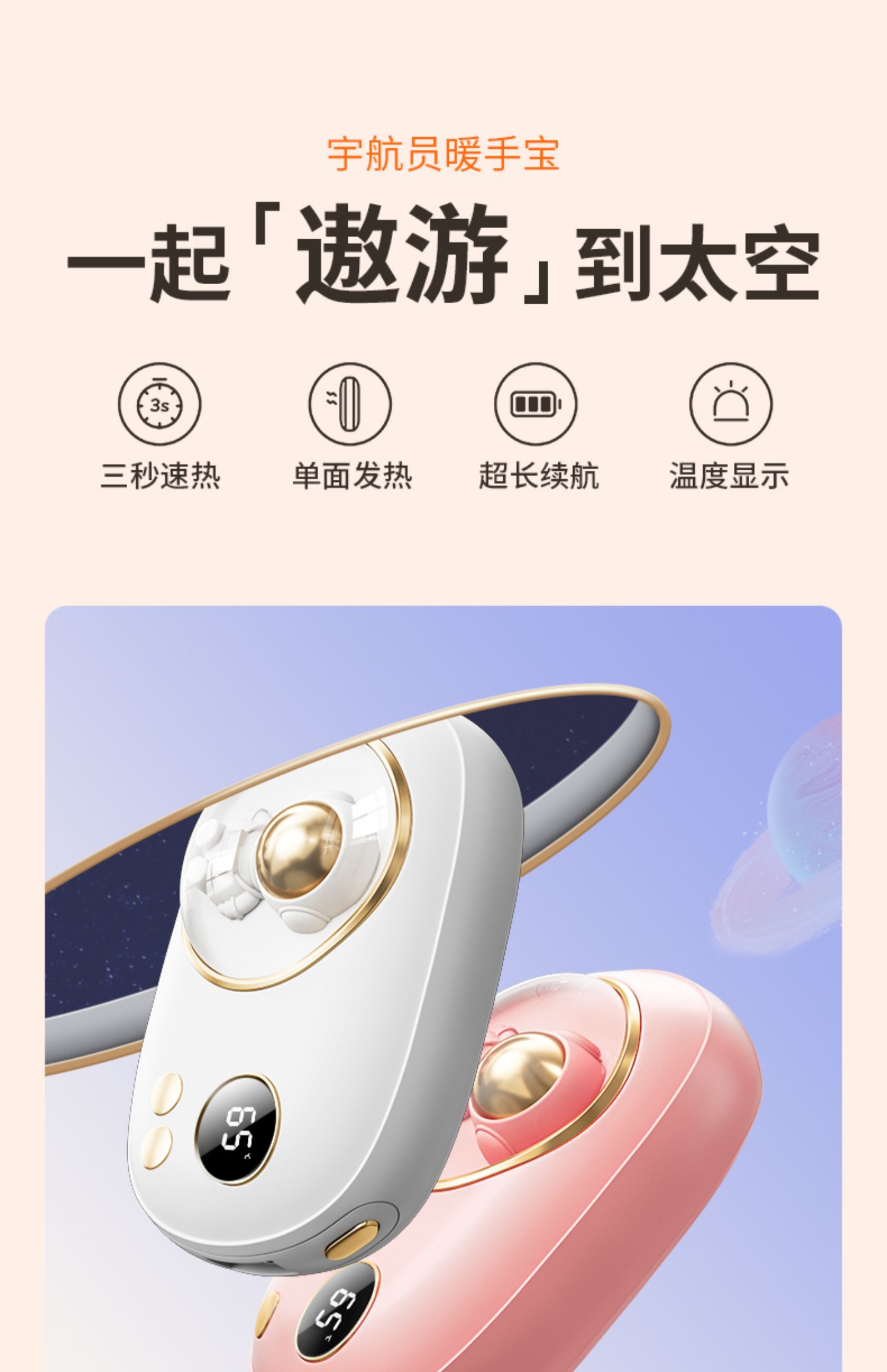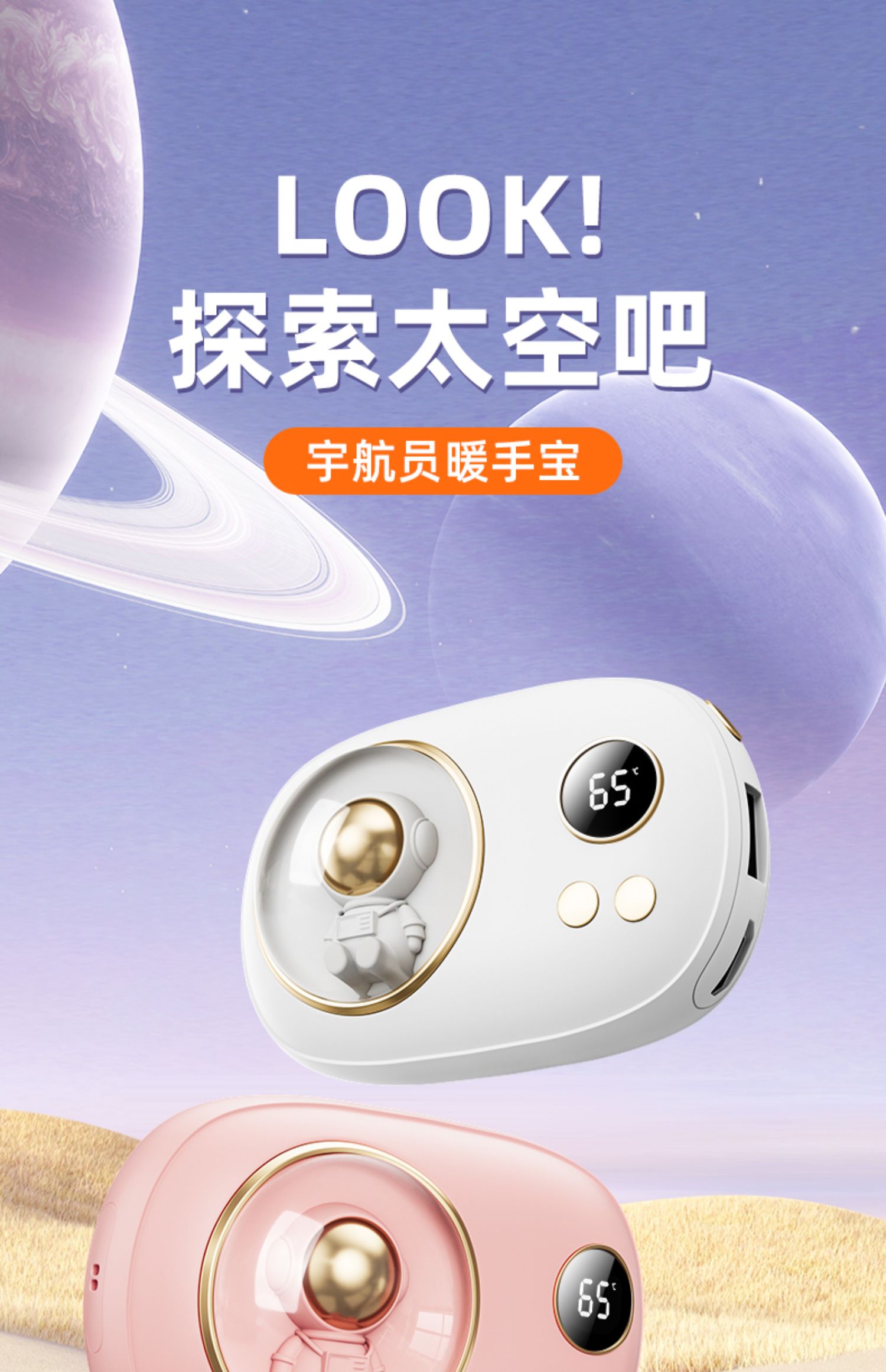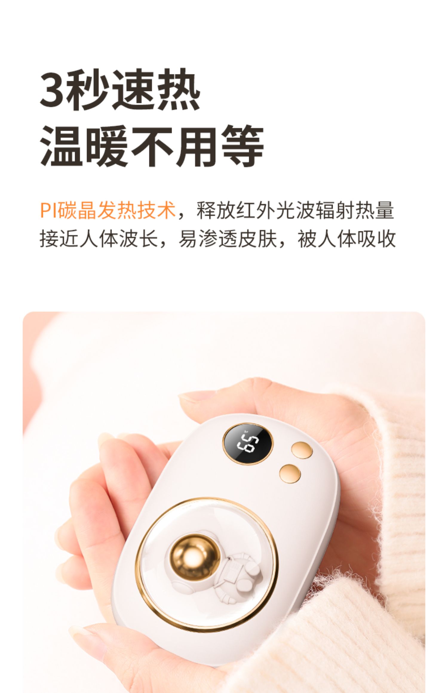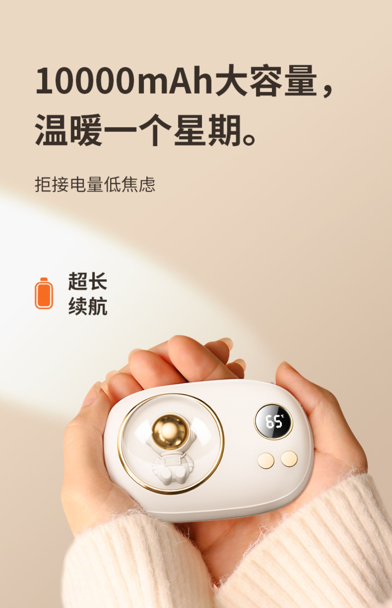 超能大白太空人数显暖手充电宝10000nAh(两色可选)