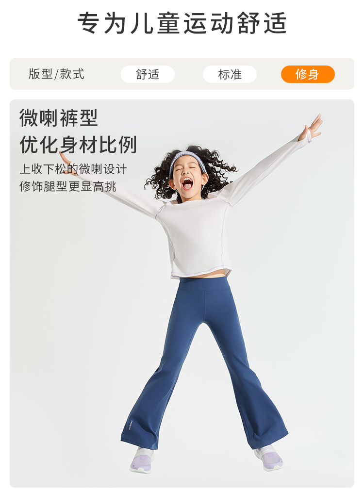 【24年秋新】moodytiger24秋新款女童休闲运动显瘦健身宽松喇叭休闲裤43211416