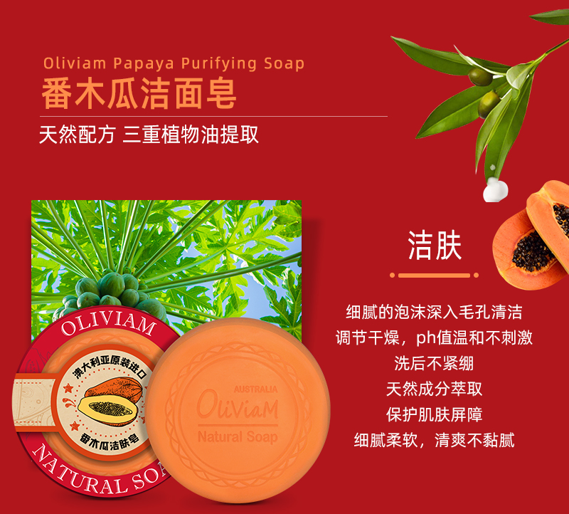【中欧班列】澳洲原装进口Oliviam/澳莉维亚红木瓜两件套套装(木瓜皂+木瓜膏)