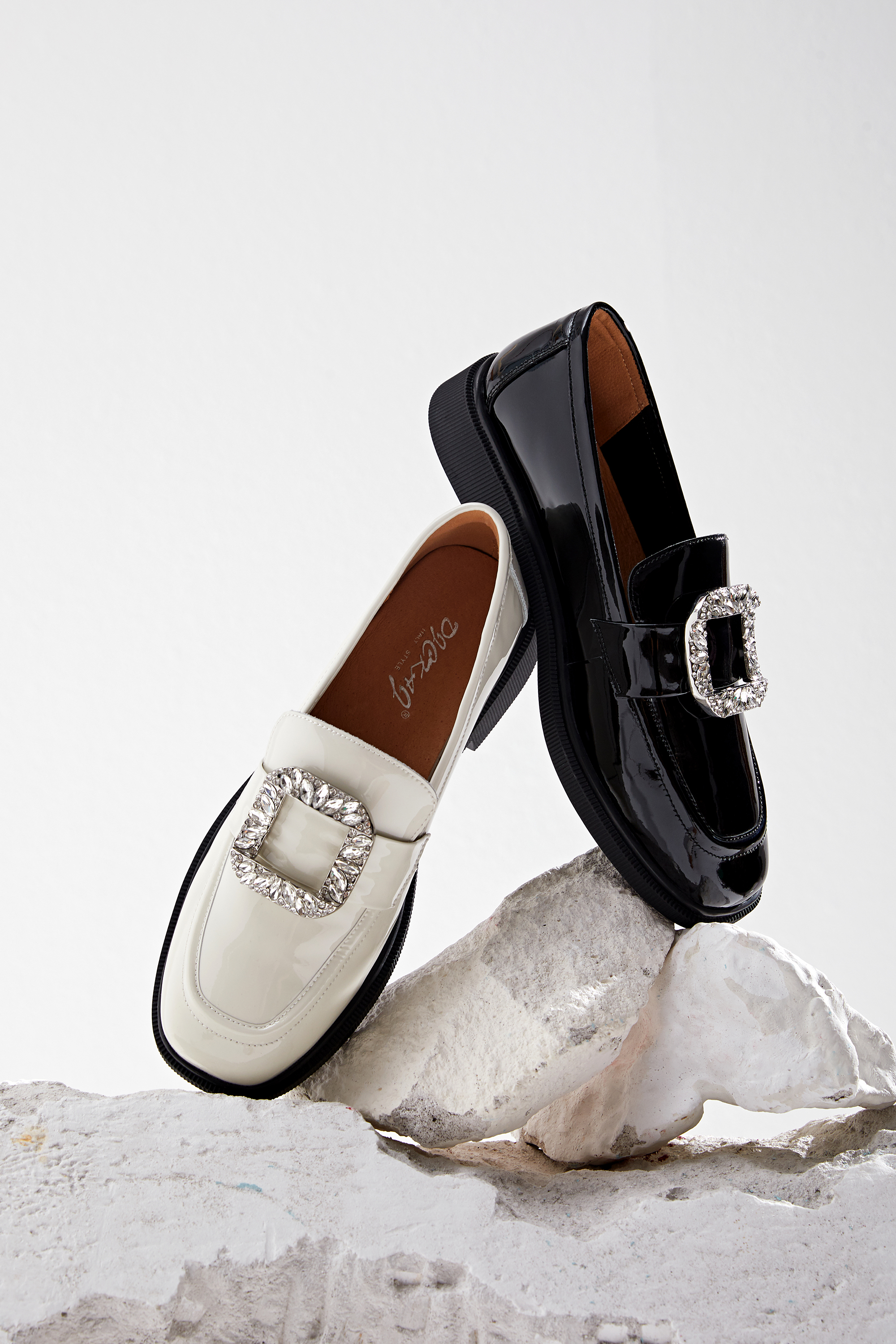 豪麟名鞋奥莱迪嘉女装牛移膜革乐福鞋DJELA22WS007黑色 原价1660元