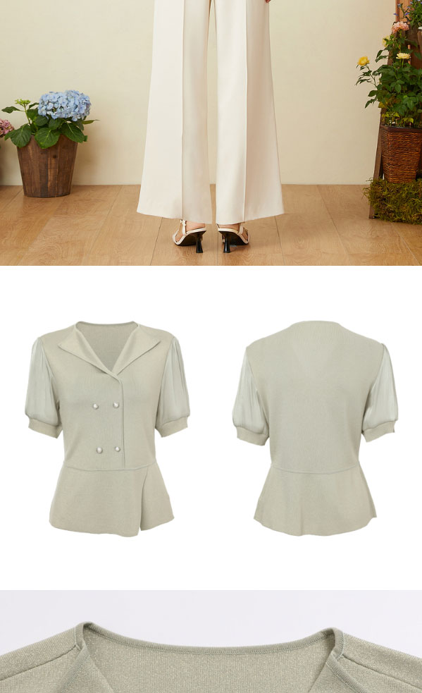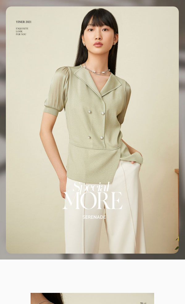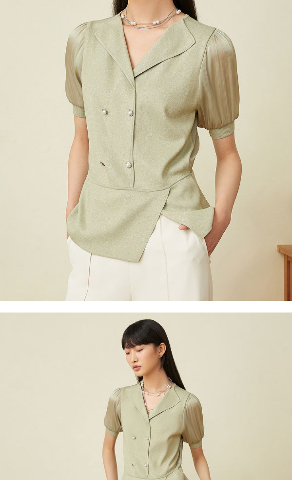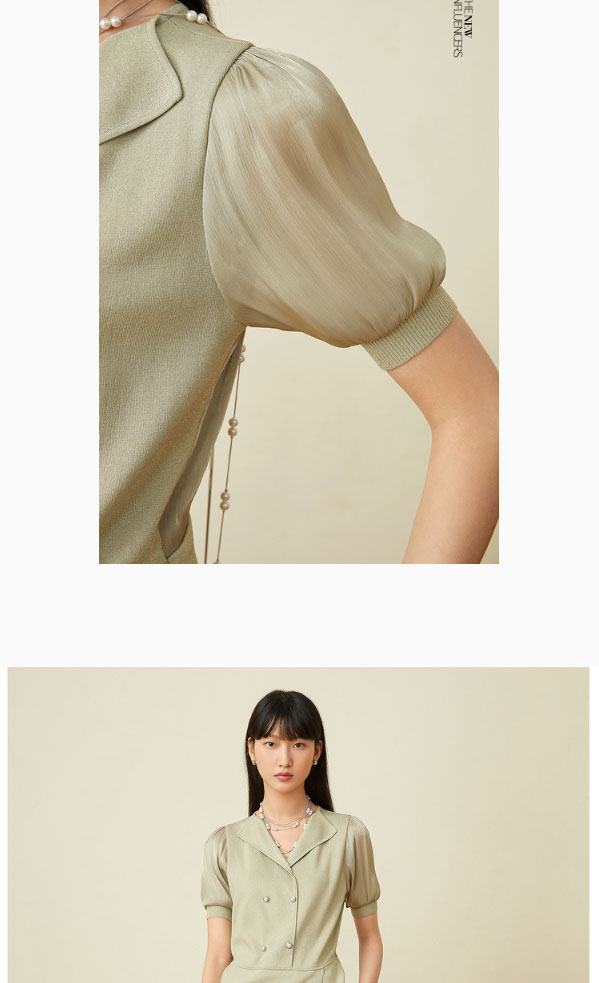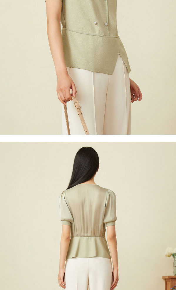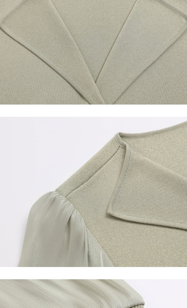 音儿女装2022夏季新款拼接泡泡袖亮丝针织衫8c32206160