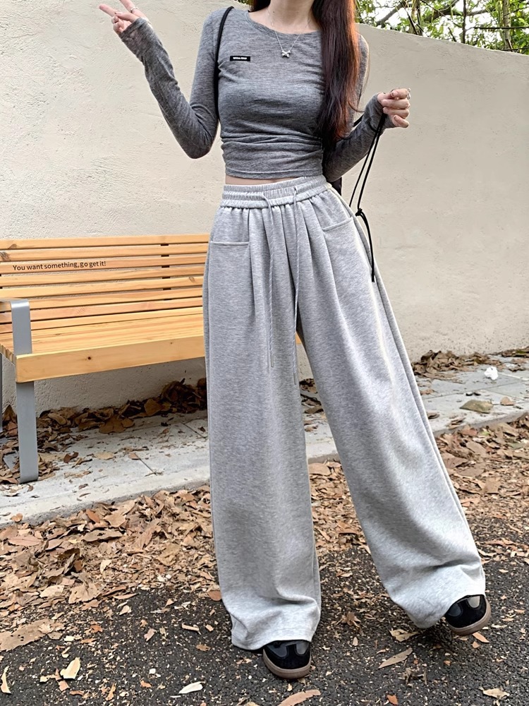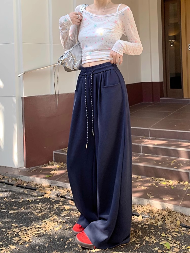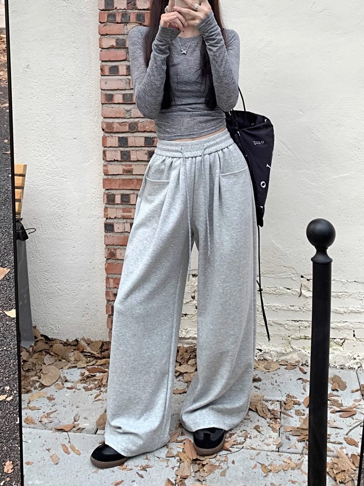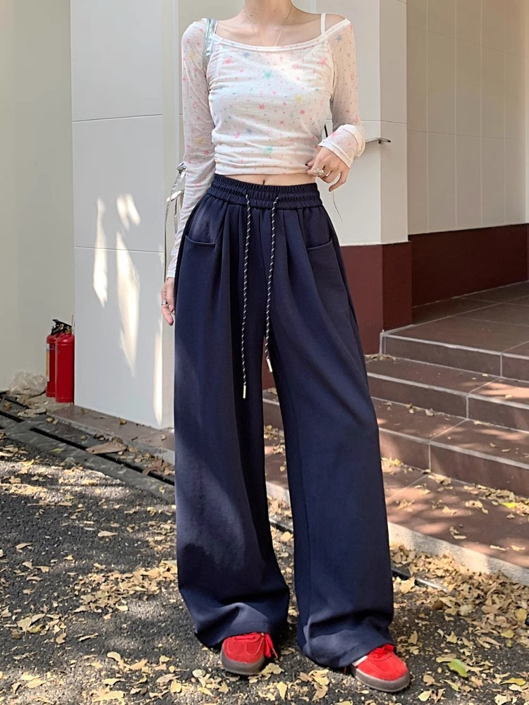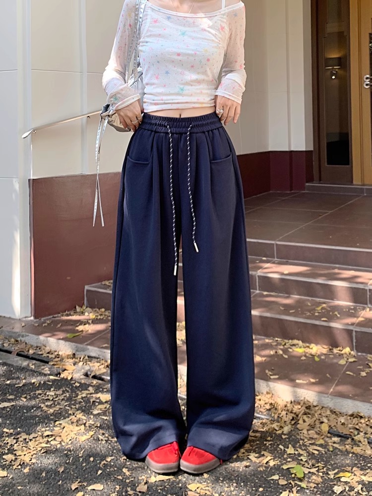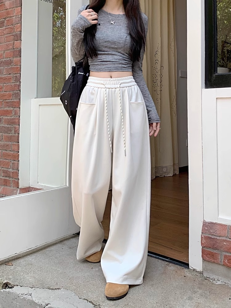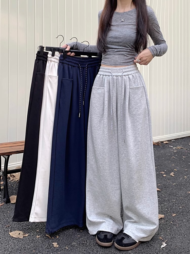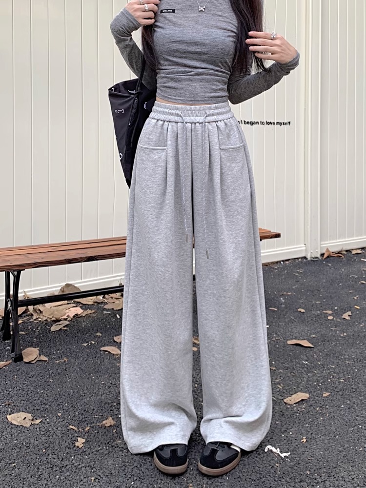 慵懒风加绒阔腿裤女秋冬季2025新款加厚高腰宽松直筒拖地休闲长裤