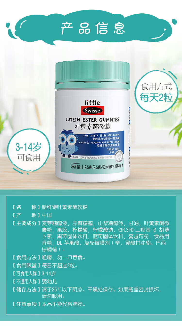 Swisse斯维诗 叶黄素酯儿童软糖45粒 3-14岁适用 0糖莓果味