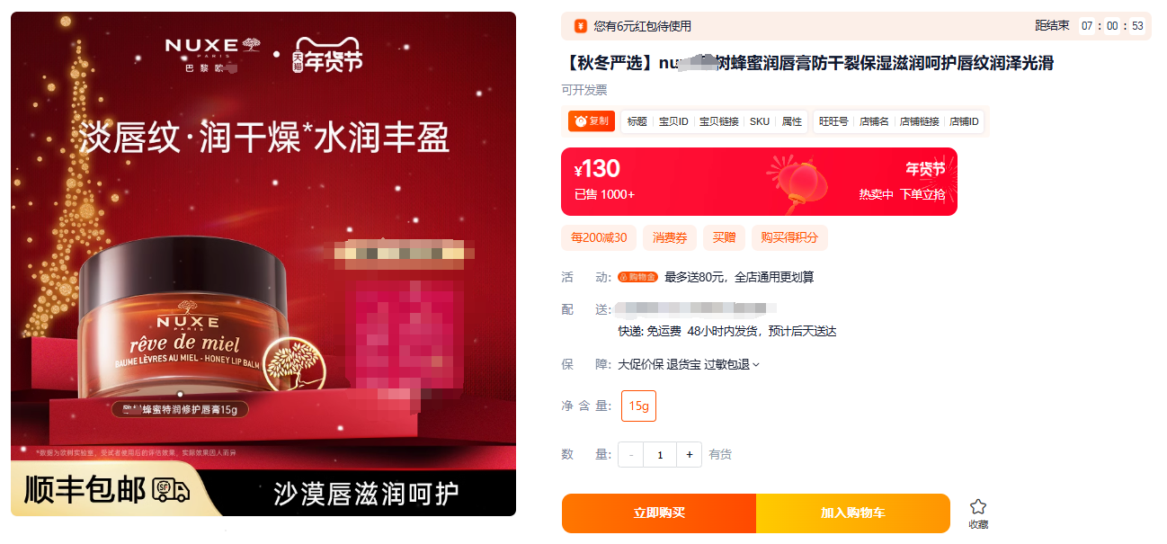 【清仓好价】法国欧树蜂蜜特润修护润唇膏15g(效期至25.3.30)
