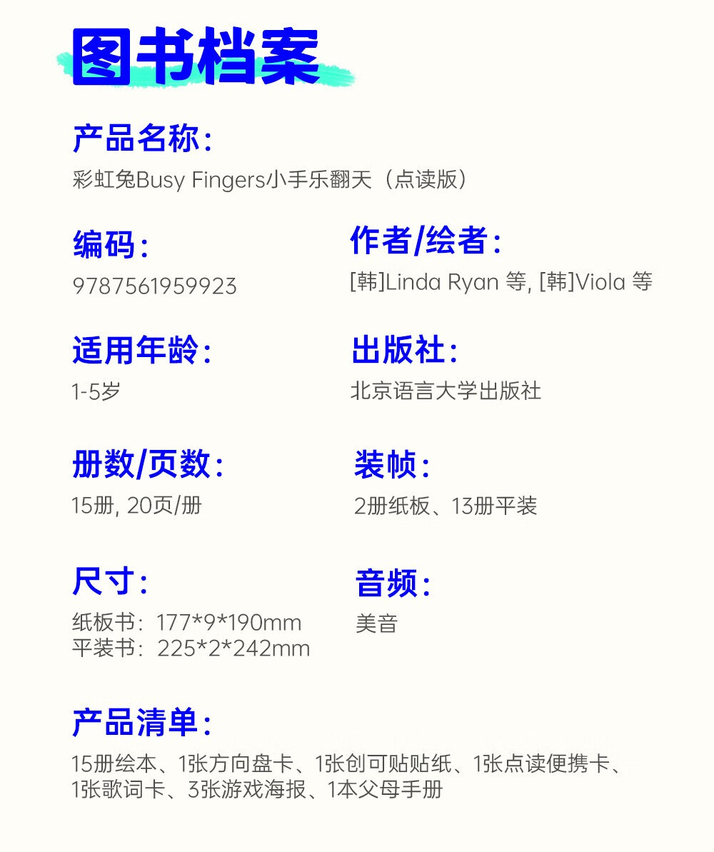 小彼恩彩虹兔Busy Fingers 小手乐翻天15册 点读版