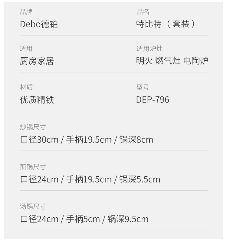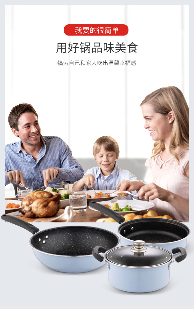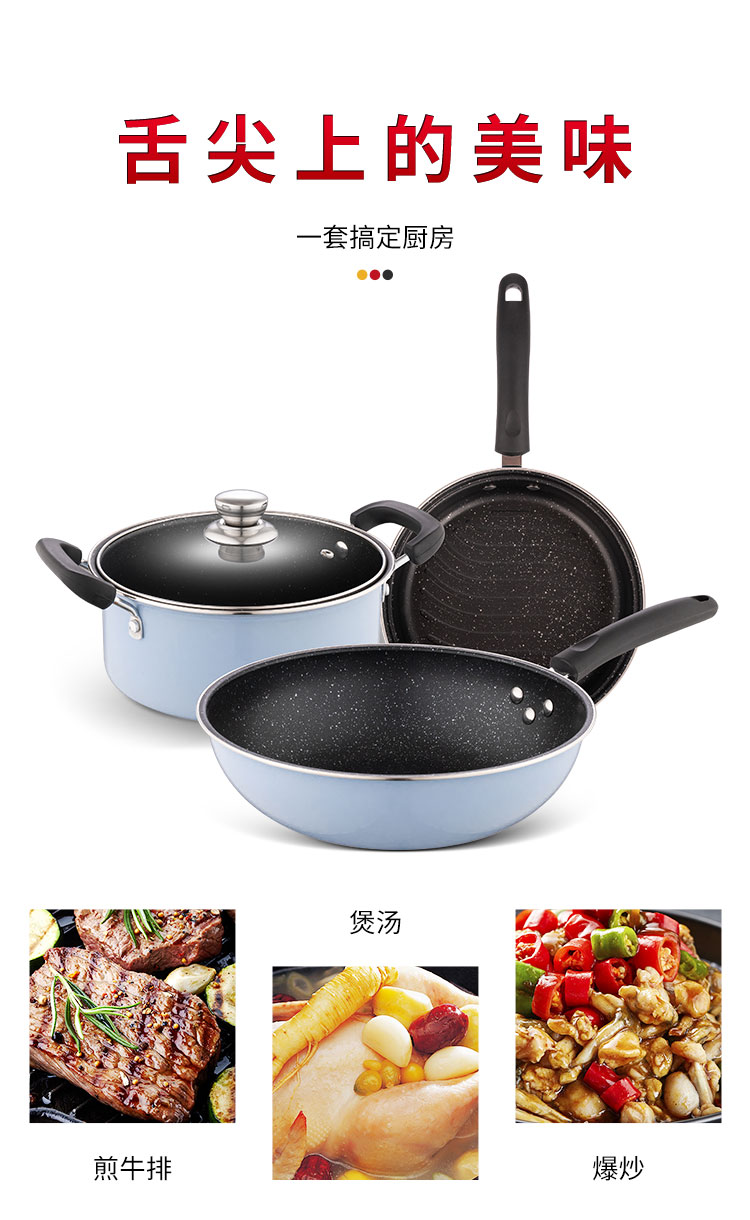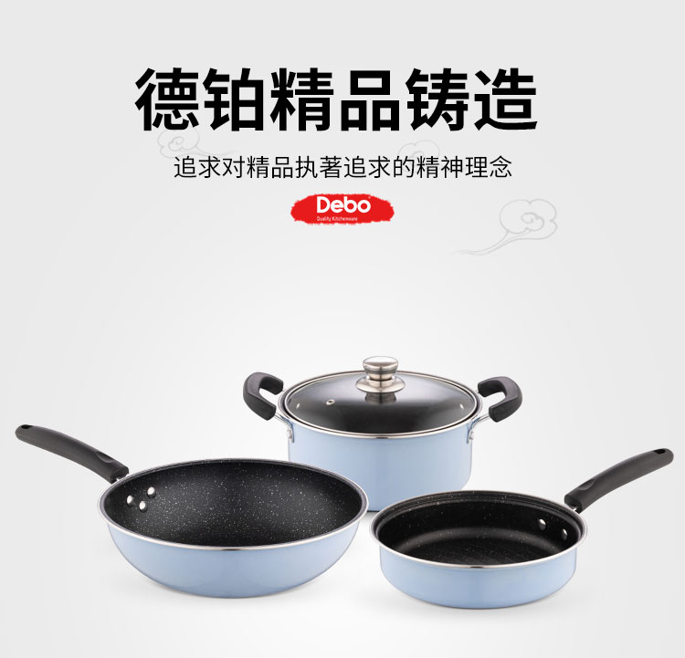 Debo德铂特比特炒锅不粘锅燃气灶专用三件套炒菜锅汤锅奶锅套装