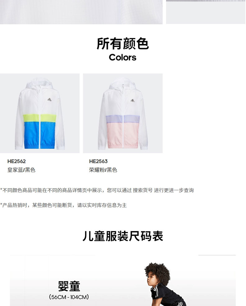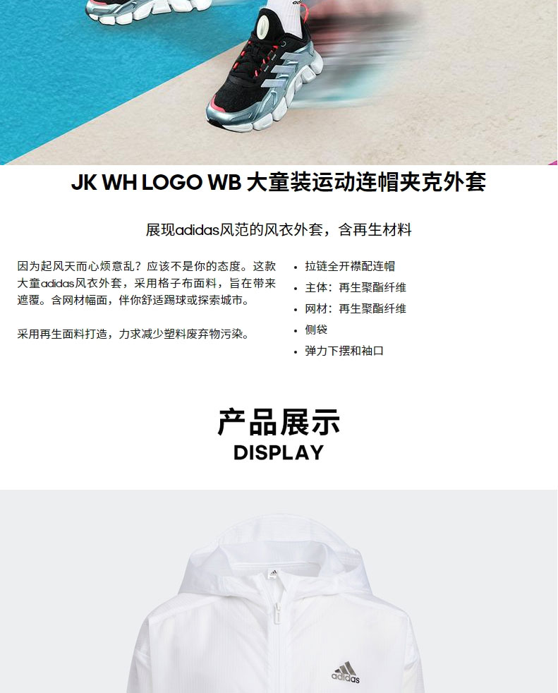 小阿迪春夏中大童薄外套adidas儿童运动防风梭织夹克HE2562