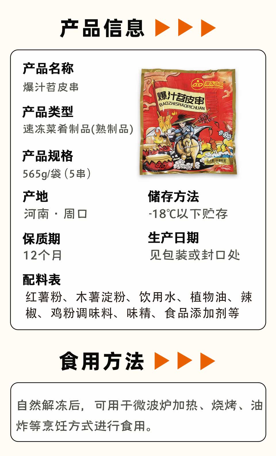 25A豫东尚品爆汁苕皮串565g/袋(5串)20袋/件