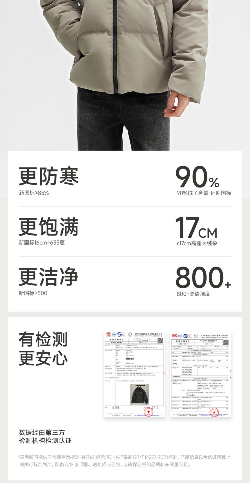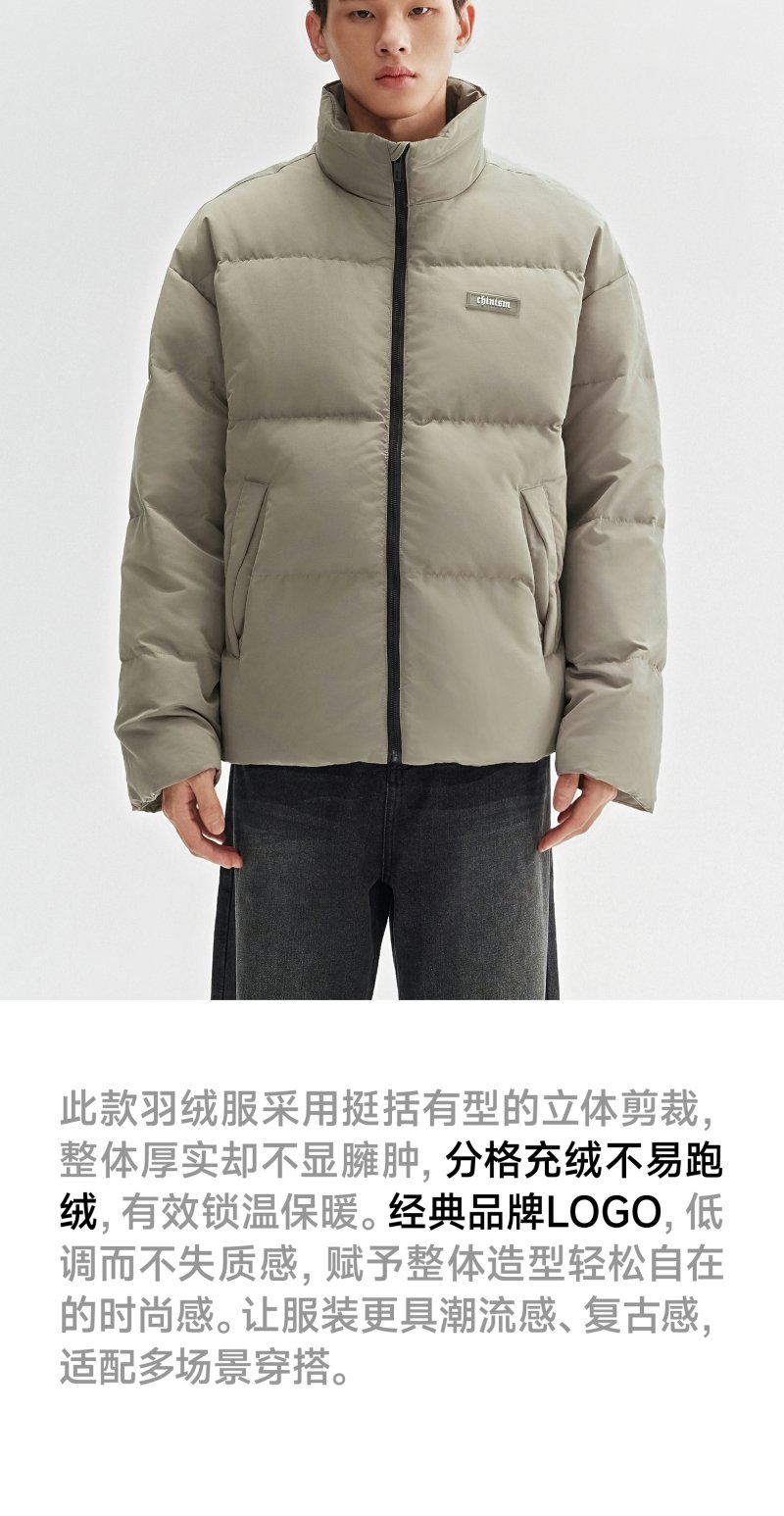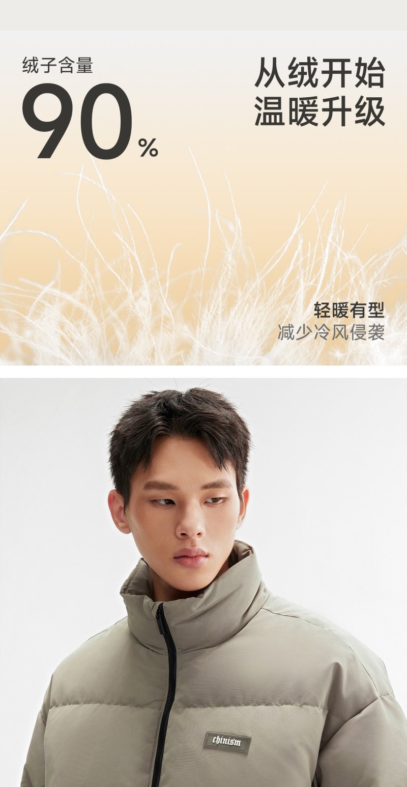 CHINISM赤尘 白鸭绒立领轻薄羽绒服男冬季美式潮牌男士短款外套