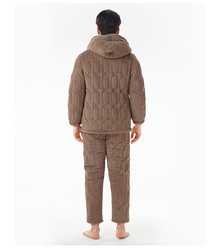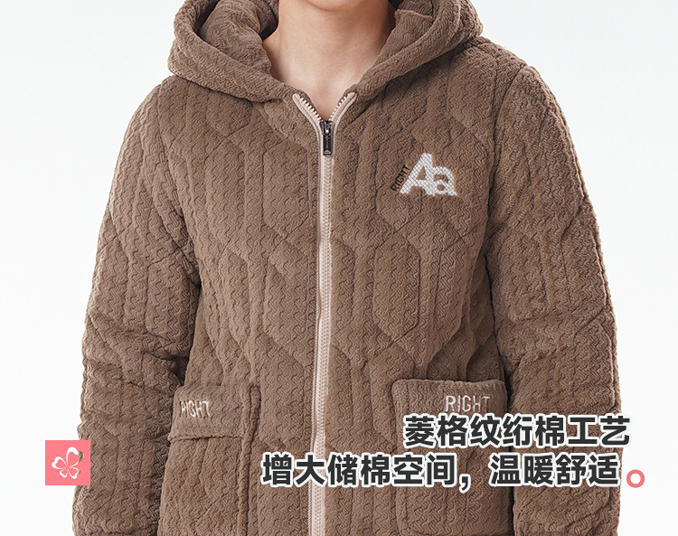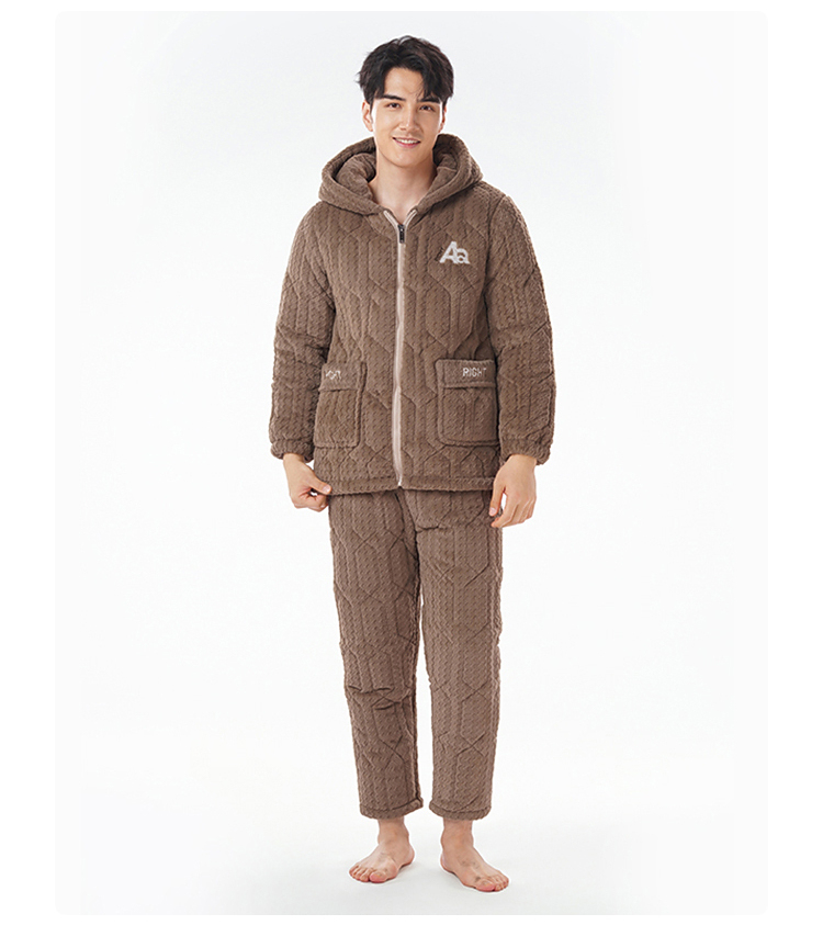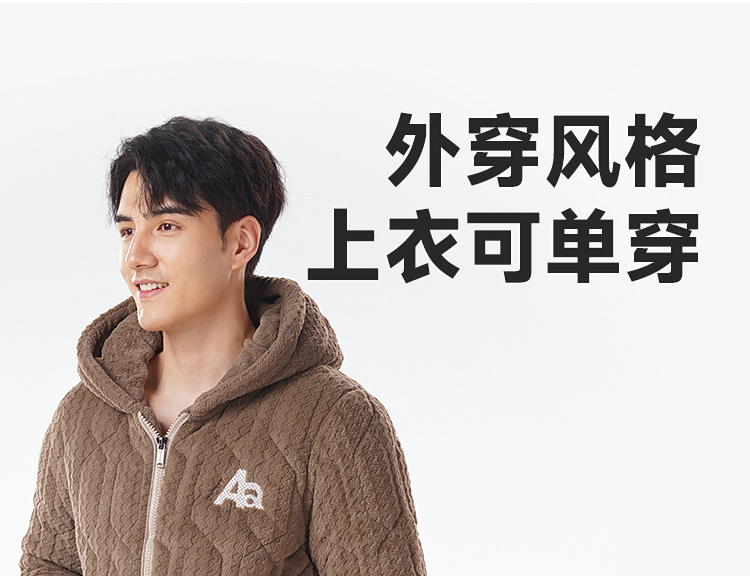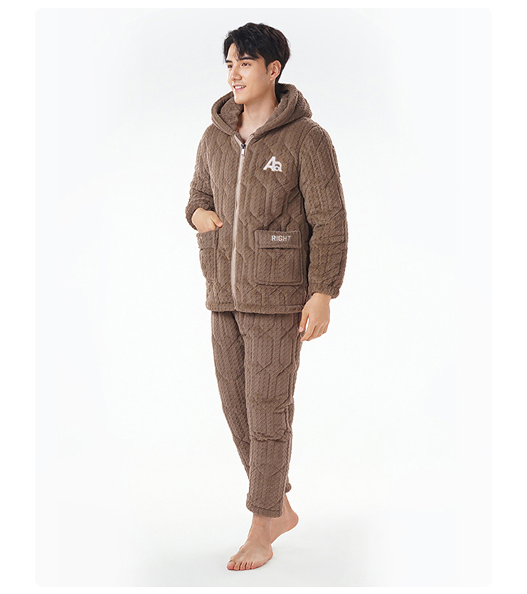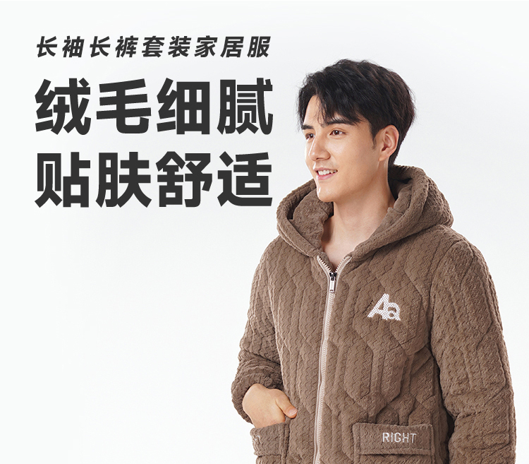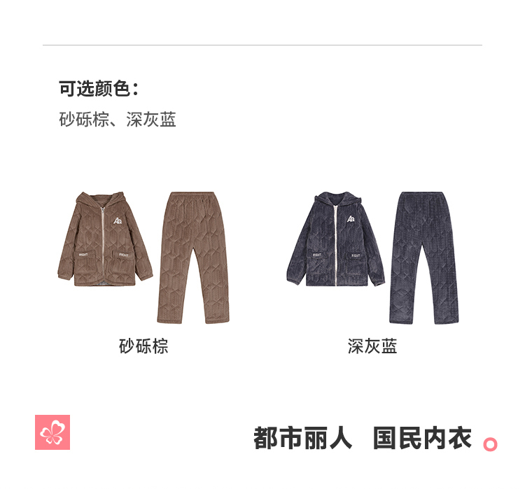 都市丽人睡衣法兰绒烂花男士家居服长袖长裤加厚夹棉套装FHH1E4