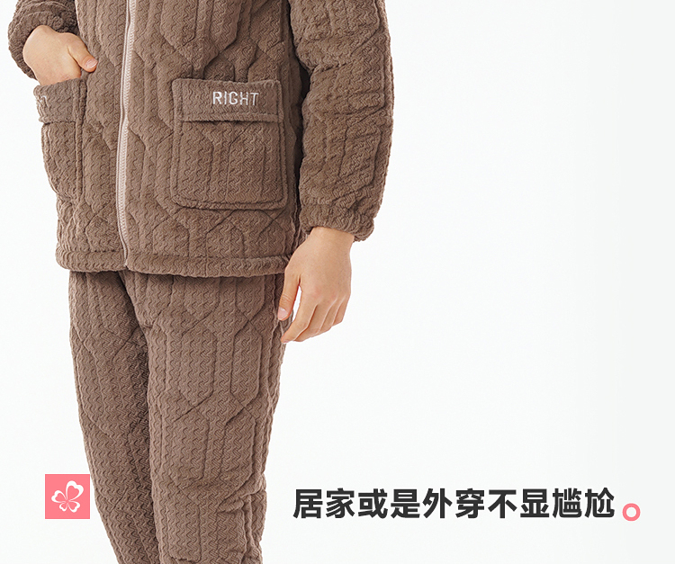 都市丽人生活家居女士睡衣长毛绒夹棉加厚款长袖长裤类家居服套装LH31F9